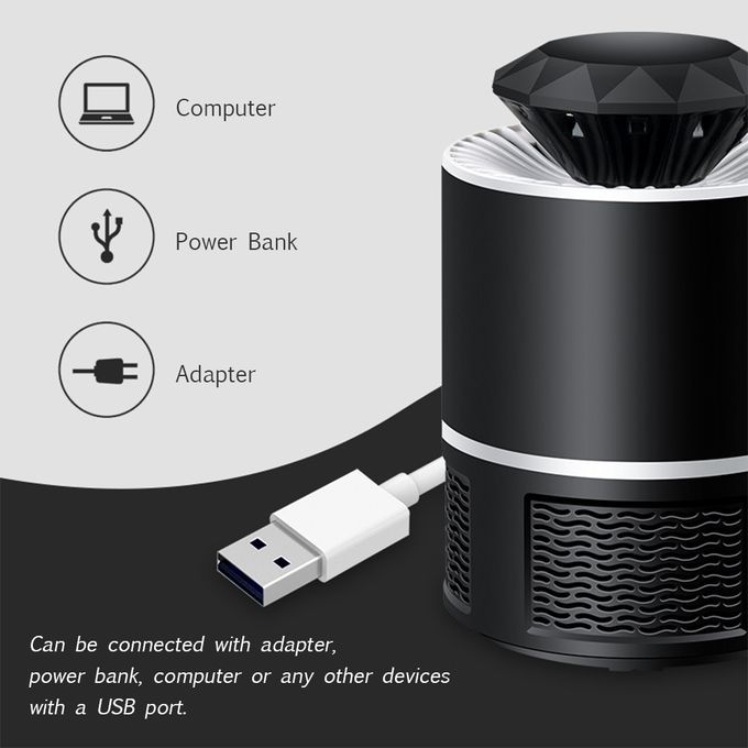 Environmentally friendly, purely photocatalyst lighting eradication technique.360 degree strong LED light, effectively attract mosquitoes and insects in.Sealed circulation convection wind, provides better suction trapping environment.