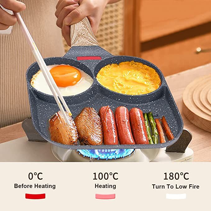make breakfast easy and fast with this pan that allows you to cook three different meals simultaneously.