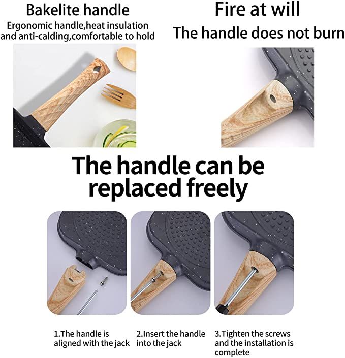 The body is made of a marble stone covering, which is safe, non-stick, prevents food from burning, and is incredibly simple to clean after use. Bakelite, which has excellent heat insulation qualities and guards against burns, is used to make the handle.it is very easy to clean, convenient to use, and durable, long shelf life.