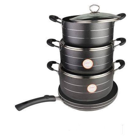 3 Piece stainless Set will be a perfect addition to your cooking utensils. It is made from quality aluminium so you are assured it will last you for a very long time. It comes in different sizes to take care of all your cooking amd serving needs. It has a nice design which is sure to make your kitchen decor look better. It has an aluminium cover that traps heat inside for efficient cooking. It comes in a set of 6 pots that will allow you cook different types of food at the same time.These Set will make cooking and serving enjoyable and convenient. Food cooked with this pot will be properly cooked for your enjoyment. You can easily wash and clean these pots after use. It is dishwasher safe so cleaning is even more convenient. No matter how frequent you cook with these pots, they will always remain rust free. It has a durable construction that will make it withstand long term use. you will have no reason to buy a replacement in a very long time. These pots can be used to cook in homes, restaurants and more.
