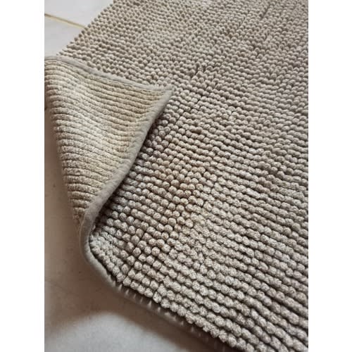 This is Orla microfibre bathroom mat. The features include non slip backing, Machine washable. Made of 100% cottton and highly absorbent. Dimension- 50x80 cm approximately. Color - Cream