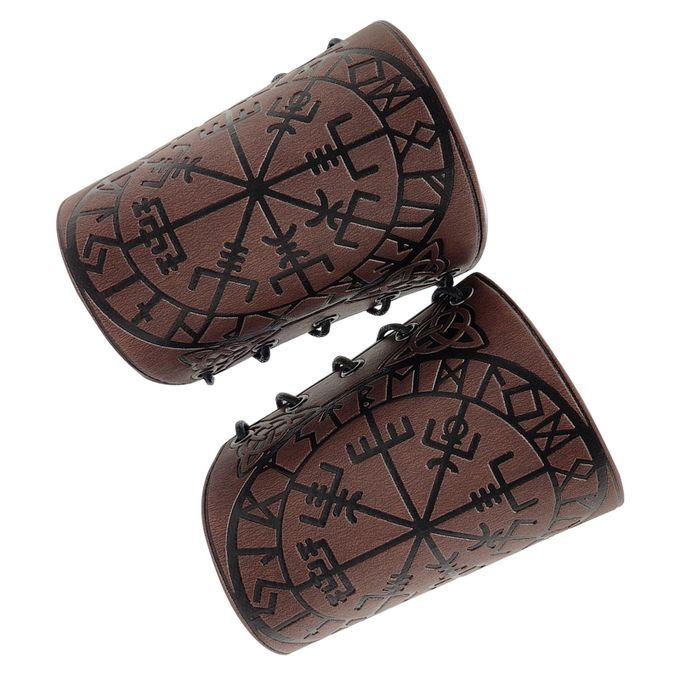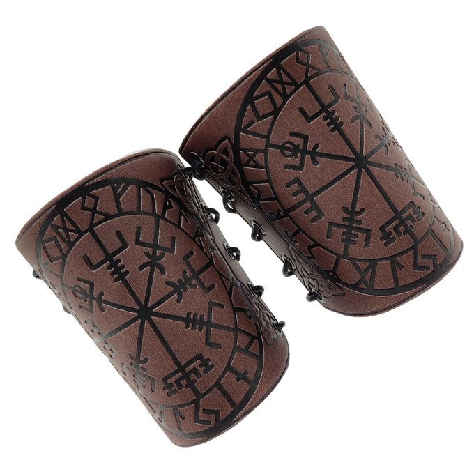 Arm Bracers;Nordic Viking Embossed Arm Bracers Medieval;PU Leather Arm Guards Bracers Cosplay props;Faux Leather Armor Medieval Gauntlets Wristband;Ancient Arm Bracers Leather Armor Cuffs Bracers;Medieval Embossed Arm Guards Men Women Gifts
