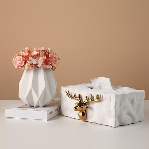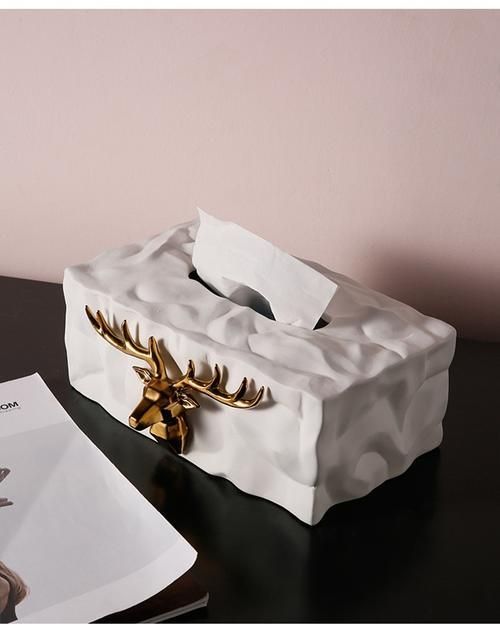 Nordic Ins Luxury Elk Ceramic Tissue Box Home Decoration Ornaments Desktop Storage Box Napkin Holder Arts Crafts Creative Gift-Tissue Boxes