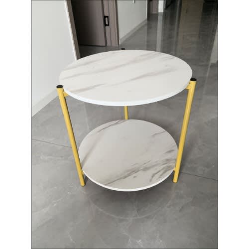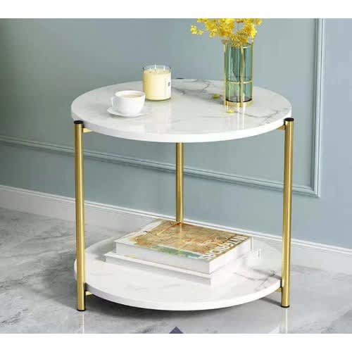 Marble effect coffee table for living room sofa side round coffee tea table 2 in 1 Combination furniture golden white This Stylish pair of two nesting tables boasts all natural Marble tops with stunning golden powder coated edges and bases.