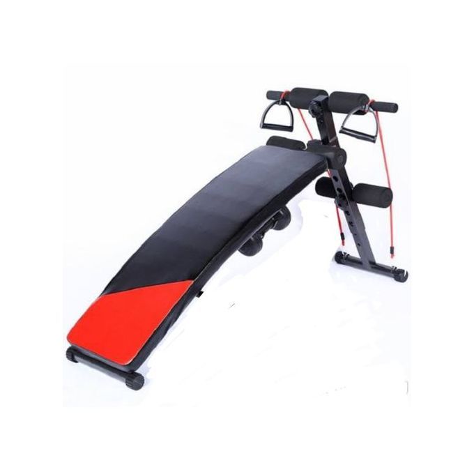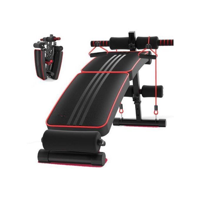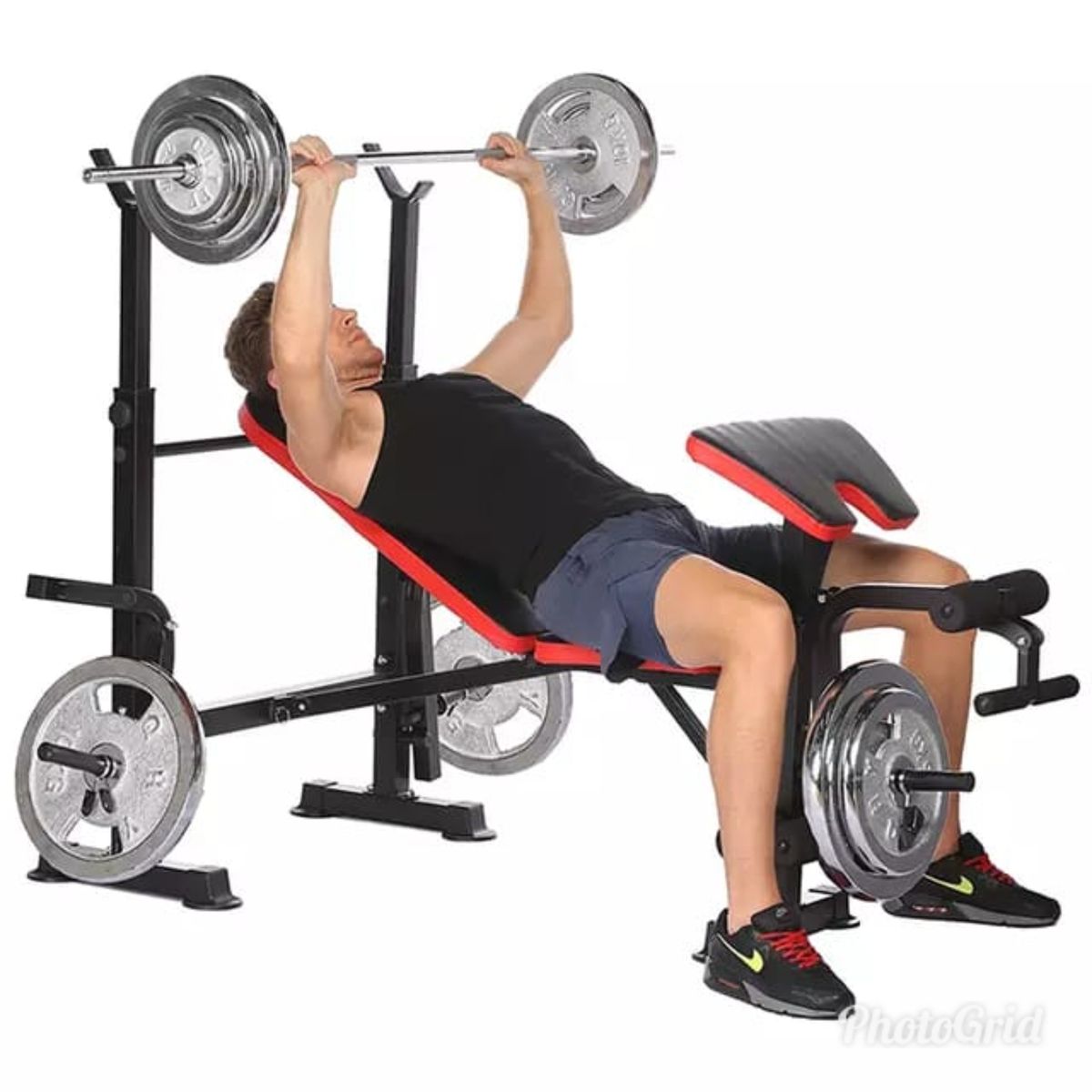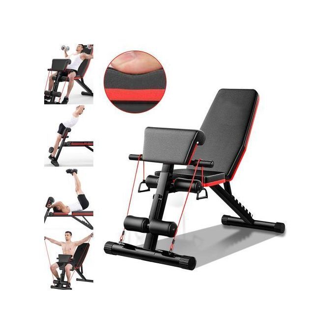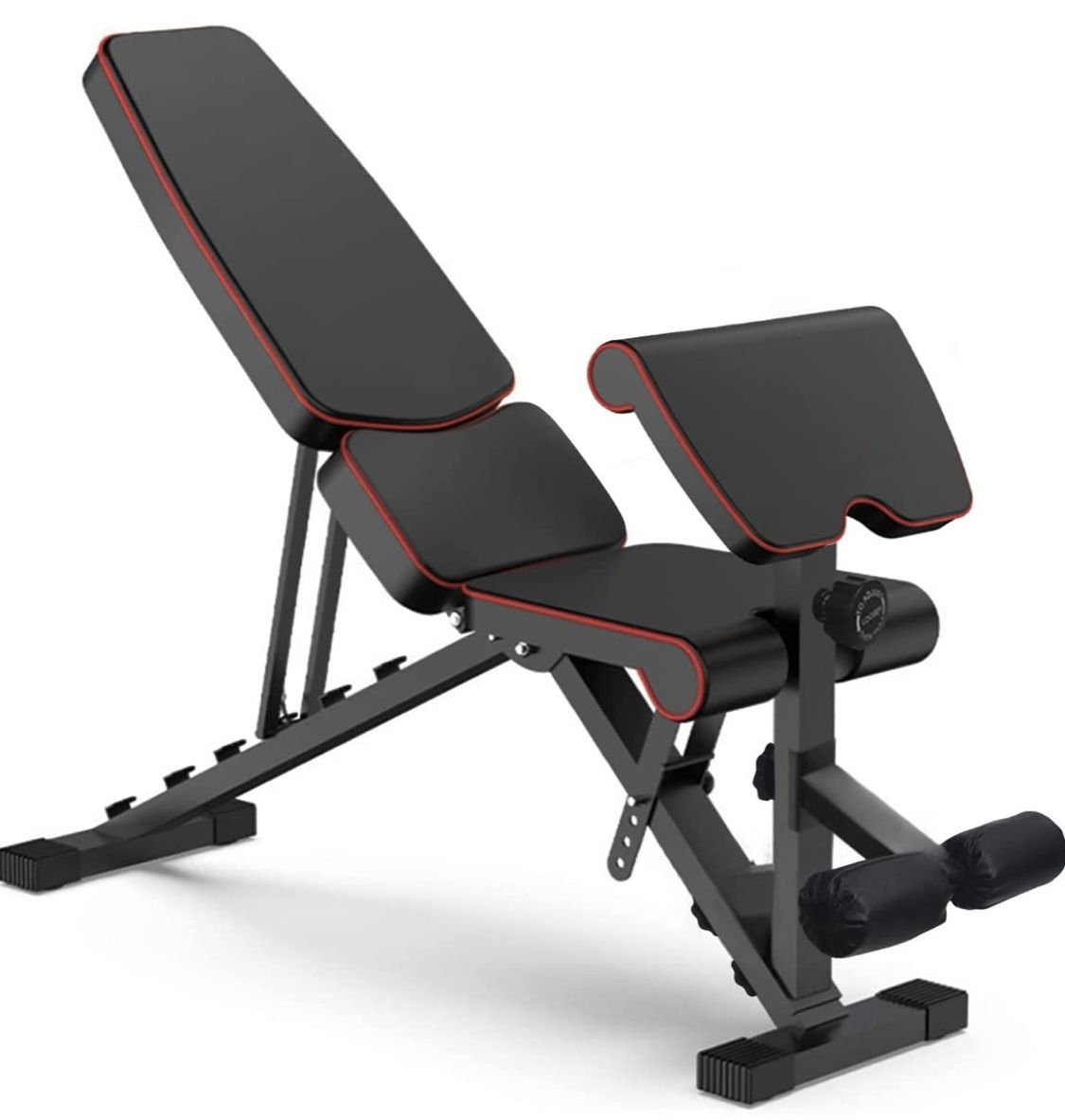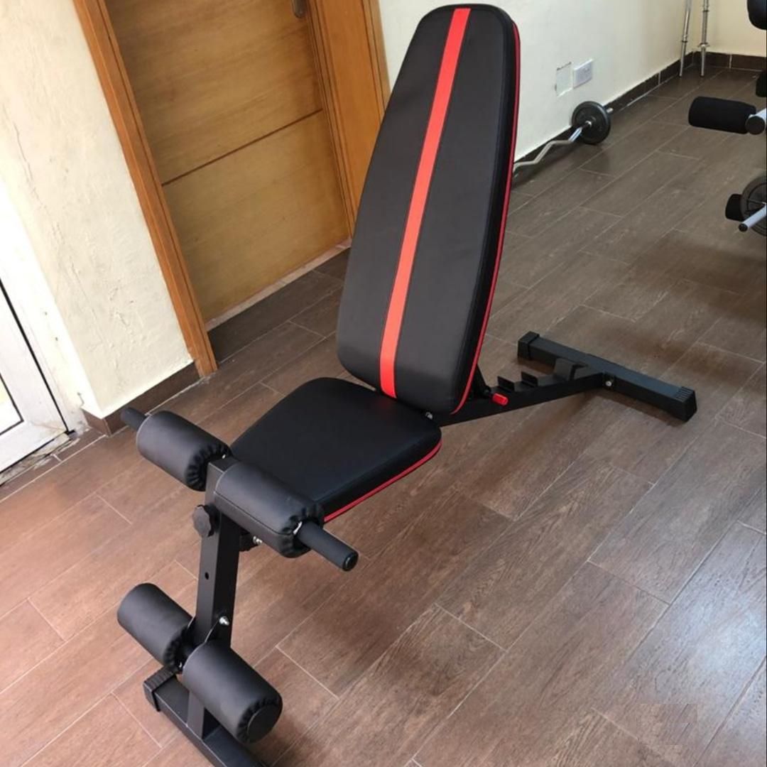 A durable workout bench offering an adjustable, ergonomic design. Equipped with flat, incline, decline, and military adjustability options. It's a perfect companion to your at-home workout environment.