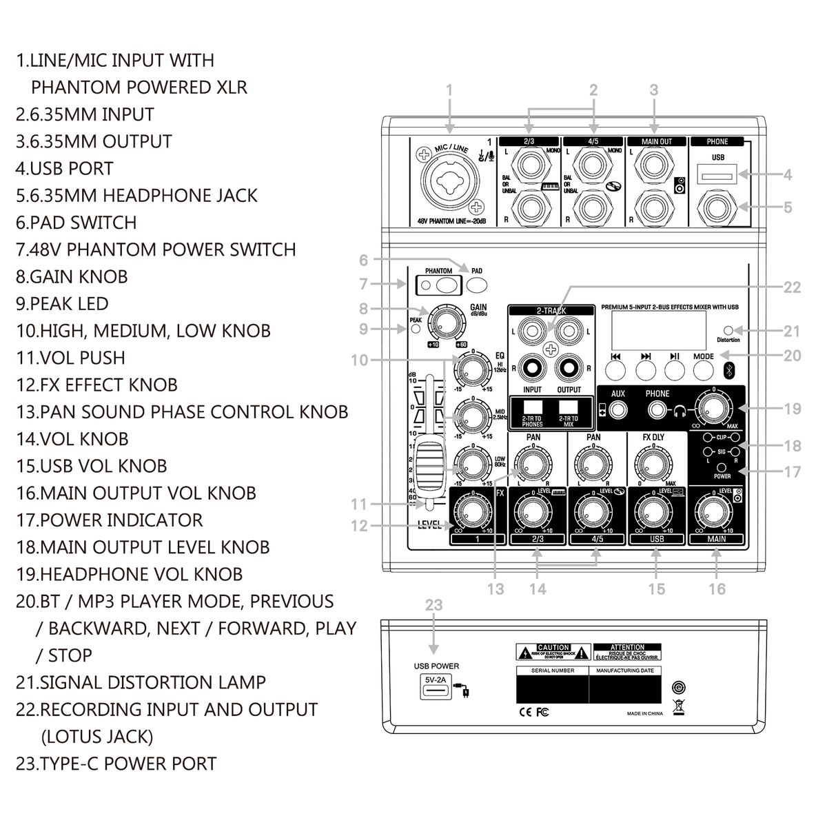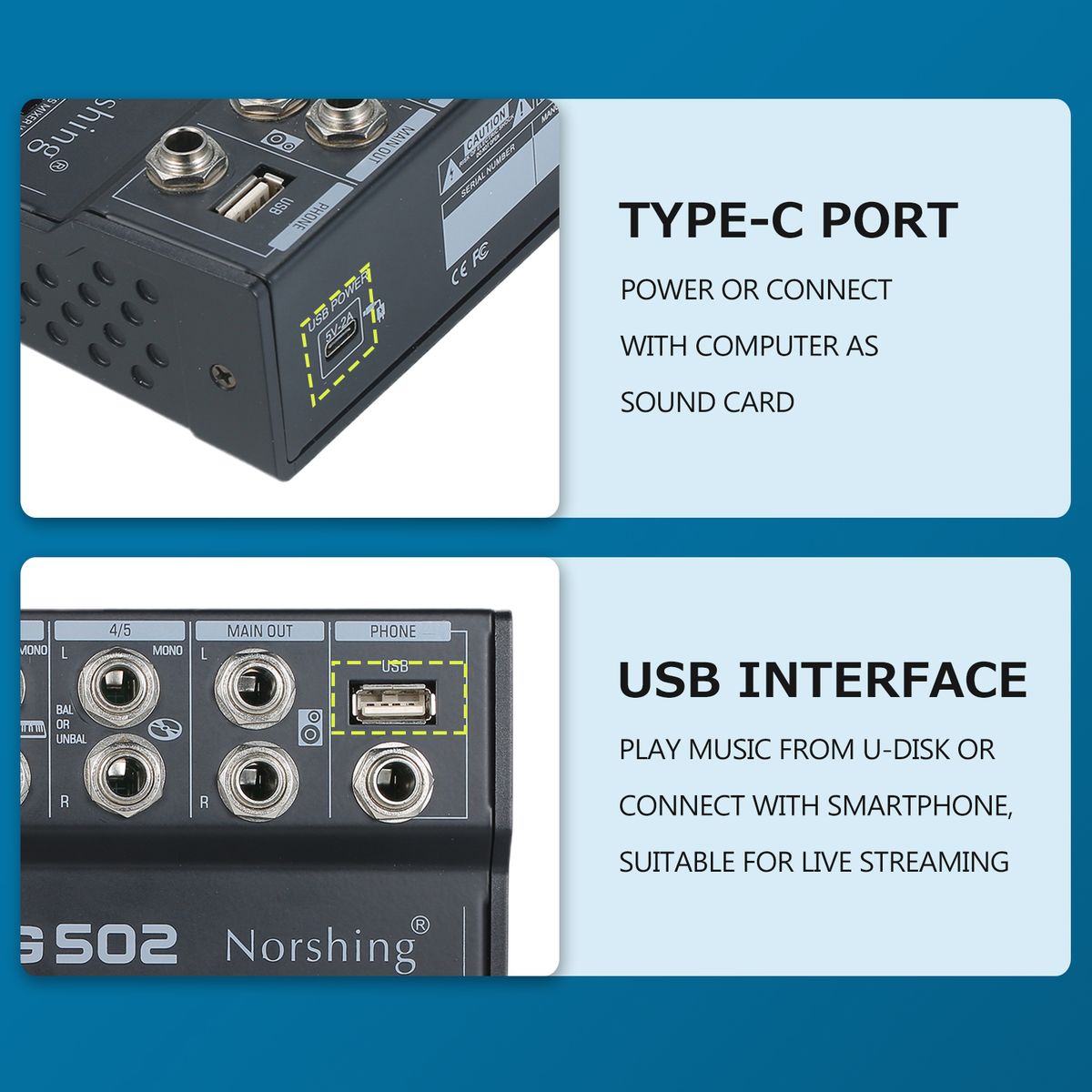 Multi Functions: Type-C port, to wire with computer, for power or data transfer (as sound card); USB port, to play music from U-disk or connect smartphone via adapter (not included) for live streaming.