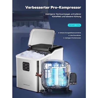 A superb ice making machine that you do not need to plumb in and produces batches of ice in as little as 10 minutes.