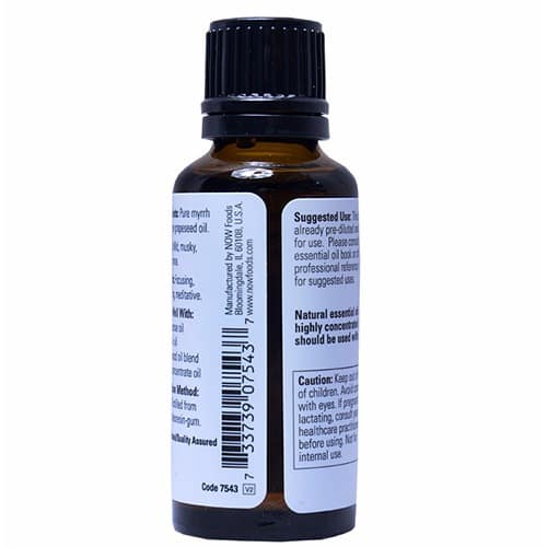 Botanical Name: Commiphora Myrrha Plant Part: Steam Distilled from plant oleoresins gums Origin: Somalia Common Uses: Myrrh Essential Oil is thought to enhance spirituality. Aromatherapists use it as an aid in meditation or before healing. Its actions are characterized as the following: antimicrobial, antifungal, astringent and healing, tonic and stimulant, carminative, stomachic, anti-catarrhal, expectorant, diaphoretic, vulnerary, locally antiseptic, immune stimulant, bitter, circulatory stimulant, anti-inflammatory, and antispasmodic. Consistency: Medium Note: Middle Strength of Aroma: Medium Aromatic Scent: Myrrh Essential Oil has a warm, rich, spicy balsamic odor. Now Myrrh is 100% pure essential oils. We recommend a 3 to 5% dilution for topical body applications.