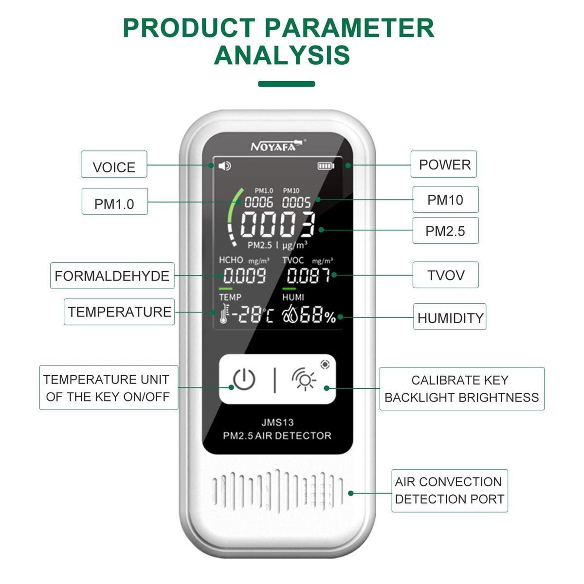 Buy NOYAFA JMS13 Household PM2.5 Detector Temperature Humidity Monitor Rechargeable LCD Digital Air Quality Detector TVOC/HCHO Formaldehyde Tester PM2.5 Monitor Desktop Thermometer Hygrometer Formaldehyde Air Quality Analyzer for Home Office Car in Nigeria