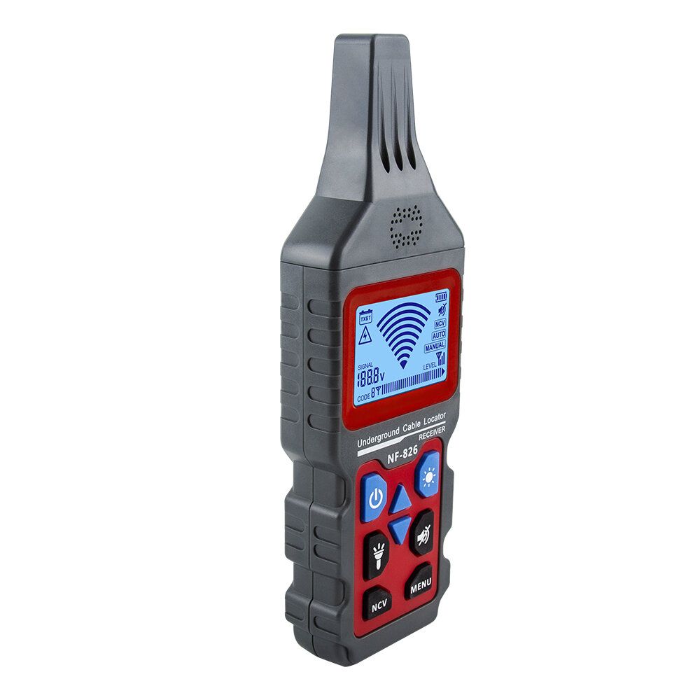 Features :1. The transmitter is integrated with the function of AC/DC voltmeter, which can measure 12 to 400V AC/DC voltage on a linear basis.2. The screen of the transmitter can display preset transmitting power, transmitted codes-its own battery energy-mains voltage detected-AC/DC status of mains voltage detected-and warning symbol for mains voltage.3. The Transmitter has the function of self-inspection to detect its own working status and to display it on the LCD screen for user\\\'s reference4. The sensitivity of the receiver can be adjusted either manually or automatically5. The receiver can sweep frequency automatically6. Both the transmitter and the receiver can work under mute mode7. Additional transmitters are available to extende or distinguish multiple signals.8. Compactness-durability and portability9. Auto power off within 10 minutes.10. Flashlight Function.11. Backlight Function.12. Mute Function. Specification:Voltage Measurement Range: Transmitter: 12V-400V (AC / DC)Output Signal: Transmitter: 125KHzVoltage: Transmitter: maximum 400V (AC / DC)Cable Depth Measurement :Receiver 0-2.5 m (wall / underground cable)Main Voltage Measurement : Receiver 0-0.4mWork Environment:Transmitter:0~40℃; Receiver:0~40℃Storage Temperature: Transimiter:-20℃~60 deg;c; Receiver:-20℃~60℃Relative hamidity(no condensation):Transmitter Maximum:80%; Receiver Maximum:80%Measuring Height: Transmitter Maximum:2000m; Receiver Maximum:2000m Package included:1 x Transmitter1 x Receiver1 x user Manual2 x Alligator Clips (black, red)2 x Test Leads (black, red)