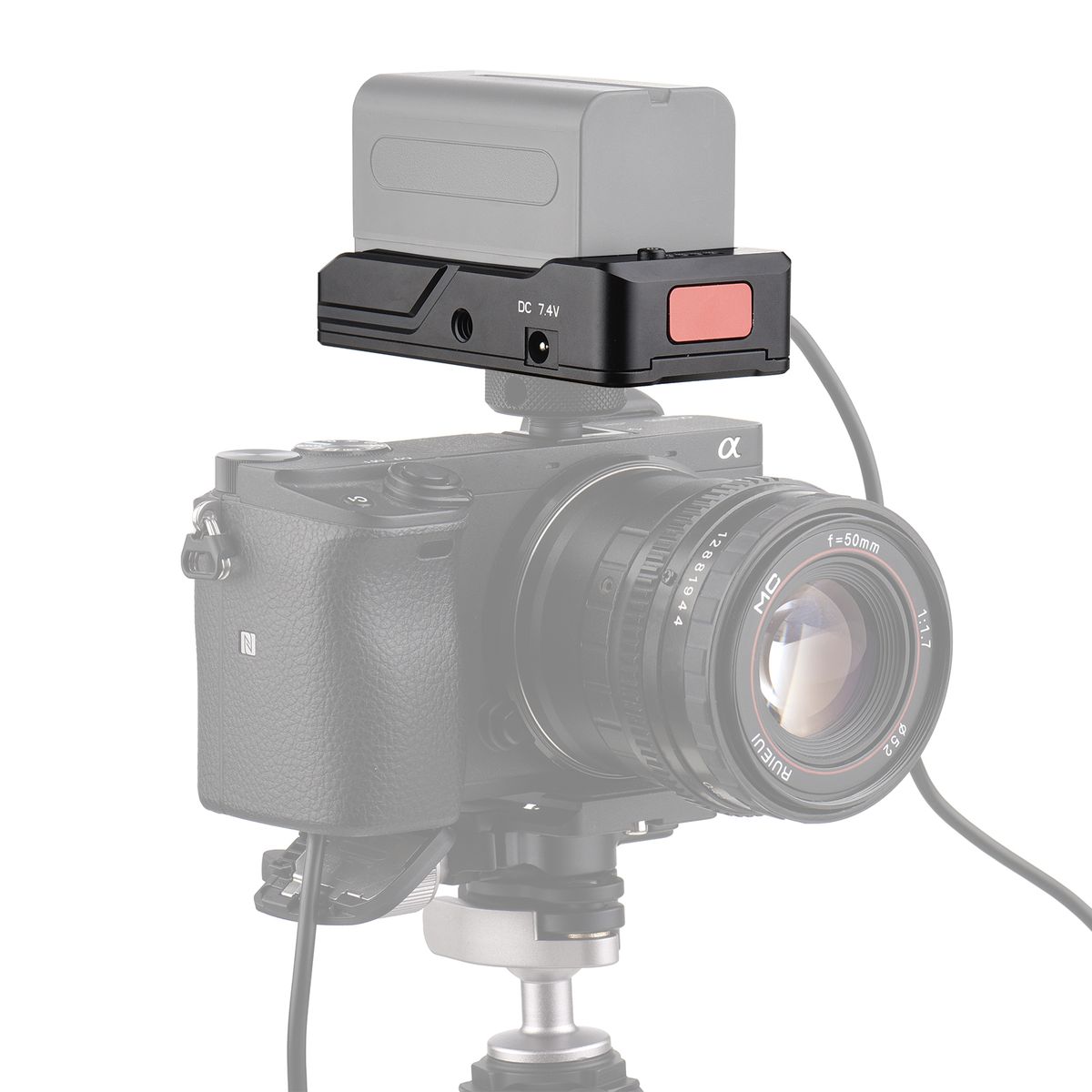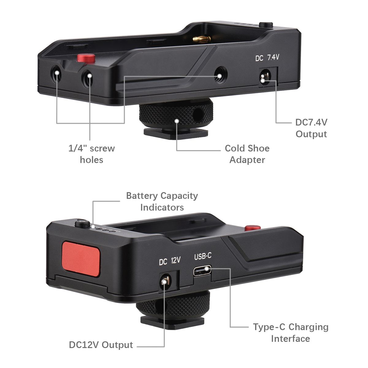1/4 inch screw holes and cold shoe adapter allows you to mount the battery plate to camera, camera cage, or other devices easily.