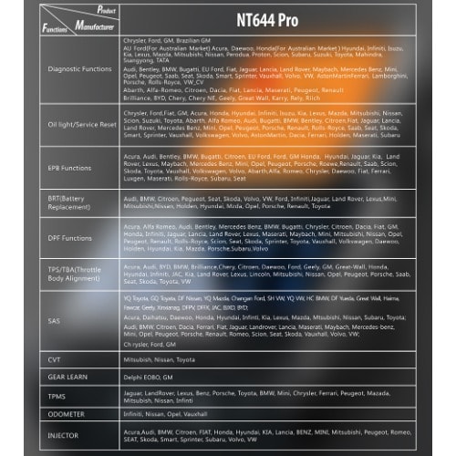 Include : ABS system, Engine system, SAS system , TPMS system , IMMO system , Battery system ,Oil service system , SRS system , ect...