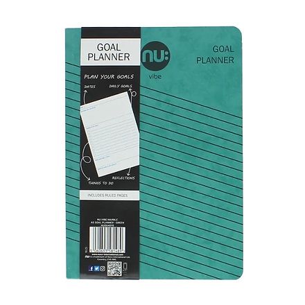 The nu: Vibe A5 Goal Planner is a functional and practical notebook with a textured card cover. Each goal planner is bound using strong black twin wire and the internal pages consist of high quality