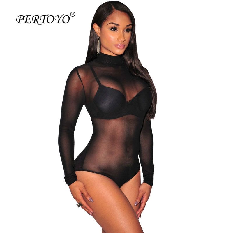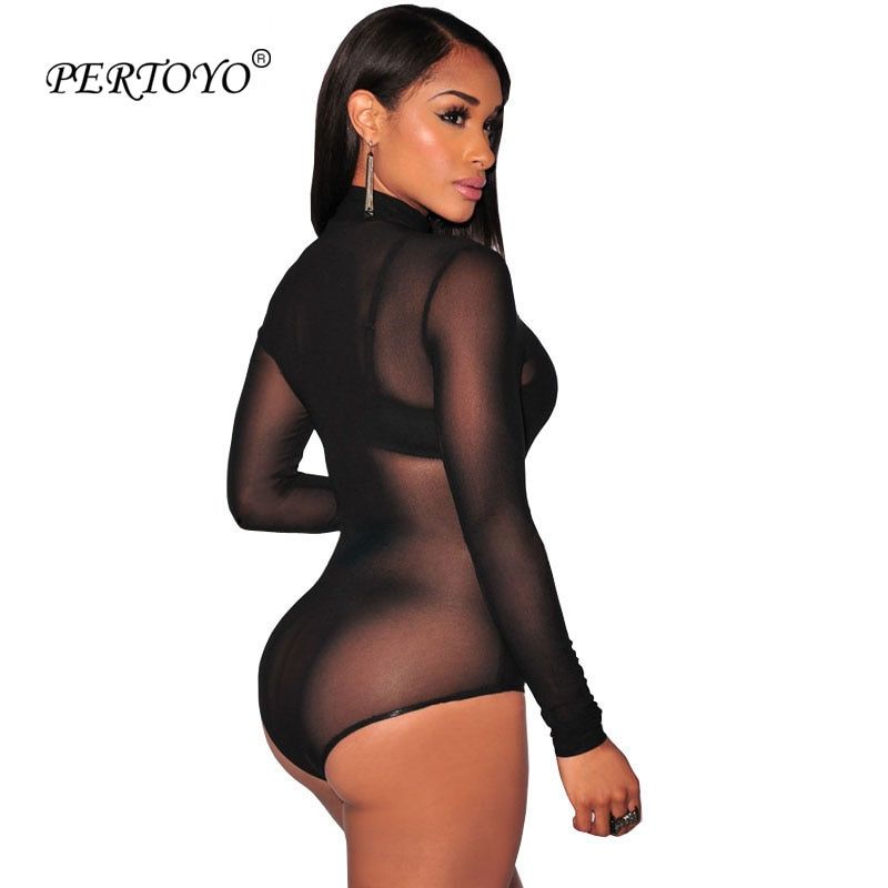 1X Nude Mesh Bodysuit Rompers Bodycon Jumpsuit Turtleneck Skinny Bodysuits Transparent New Women Sexy Body Clothing
