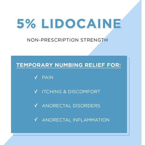 - 5% TOPICAL LIDOCAINE PAIN RELIEF - Temporary numbing relief for pain, itching & discomfort, anorectal disorders, and anorectal inflammation.