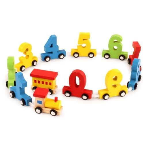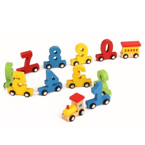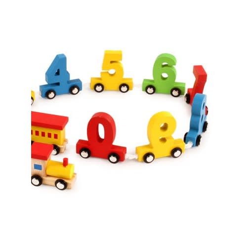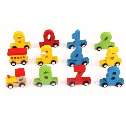 colorful 0-9 figures on top.Each train has 4 sliding wheels which glide