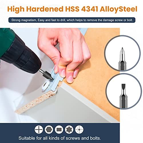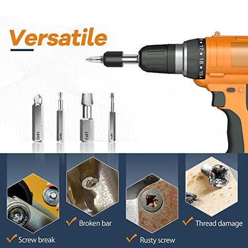 - Upgraded Version: In addition to 10 different sizes of drills and extrators, 3 slotted srews, 3 Torx srews, 4 Phillips srews and 1 quik bit holder have been added, whih make them ompatible with all kinds of drills and remove any type of srews and bolts.