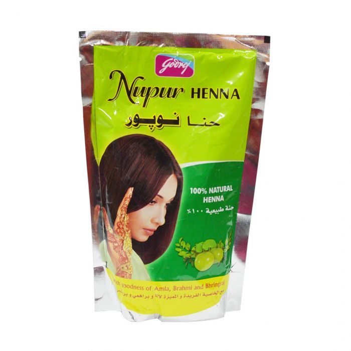 Henna (or Mehendi, as it is commonly called) is an extremely popular hair care solution known for its natural-goodness and deep nourishing qualities. Godrej Nupur brings to you the purest quality Rajasthani Henna fortified with special herbs that's acknowledged worldwide hair care and conditioning capabilities.Nupur Henna is a 100% natural formulation chosen by women as a trusted companion for hair-health and nourishment. Today Nupur stands for all that's beauty, celebration and femininity rooted in a strong Indian origin.Henna, also known as Mehendi is pure used as a natural hair conditioning agent. Godrej nupur henna is a 100% herbal product with no chemicals added, and is made with only 100% Henna.This product contains pure henna with herbs like hibiscus, Brahmi, bhringraj and amla that are all beneficial to the hair