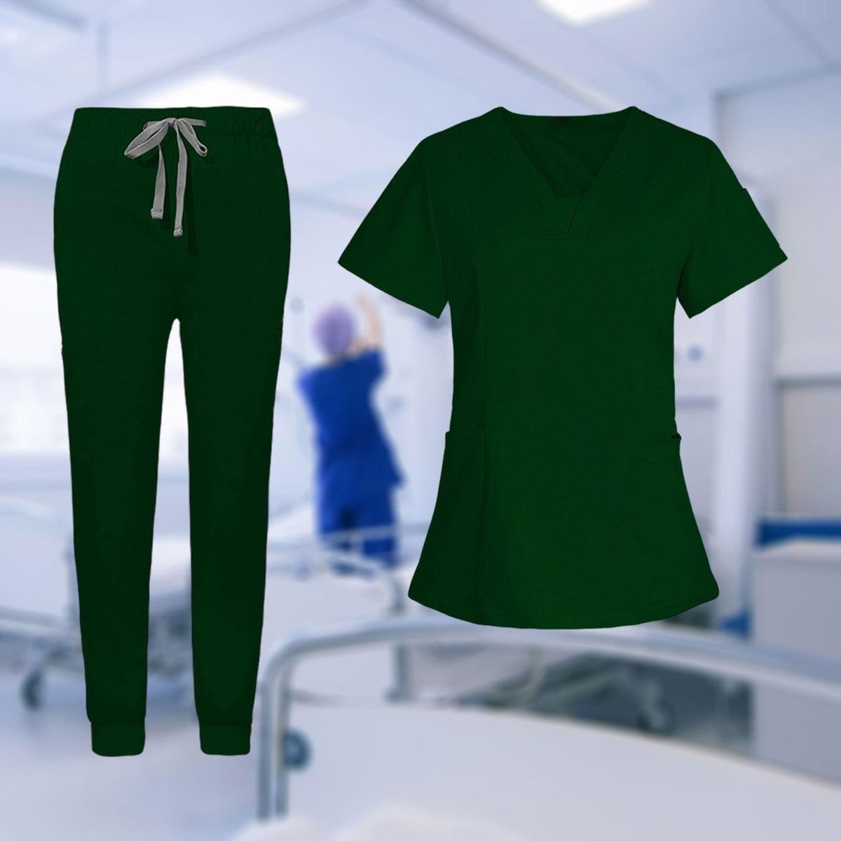 【Feature】Nurse Work Clothing with multi pockets to store your small items, pull on closure with adjustable drawstring, side stitching with reinforced seams and stitching