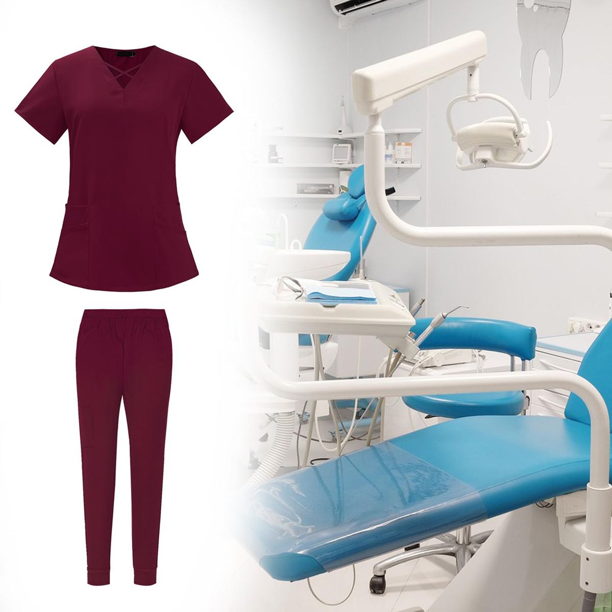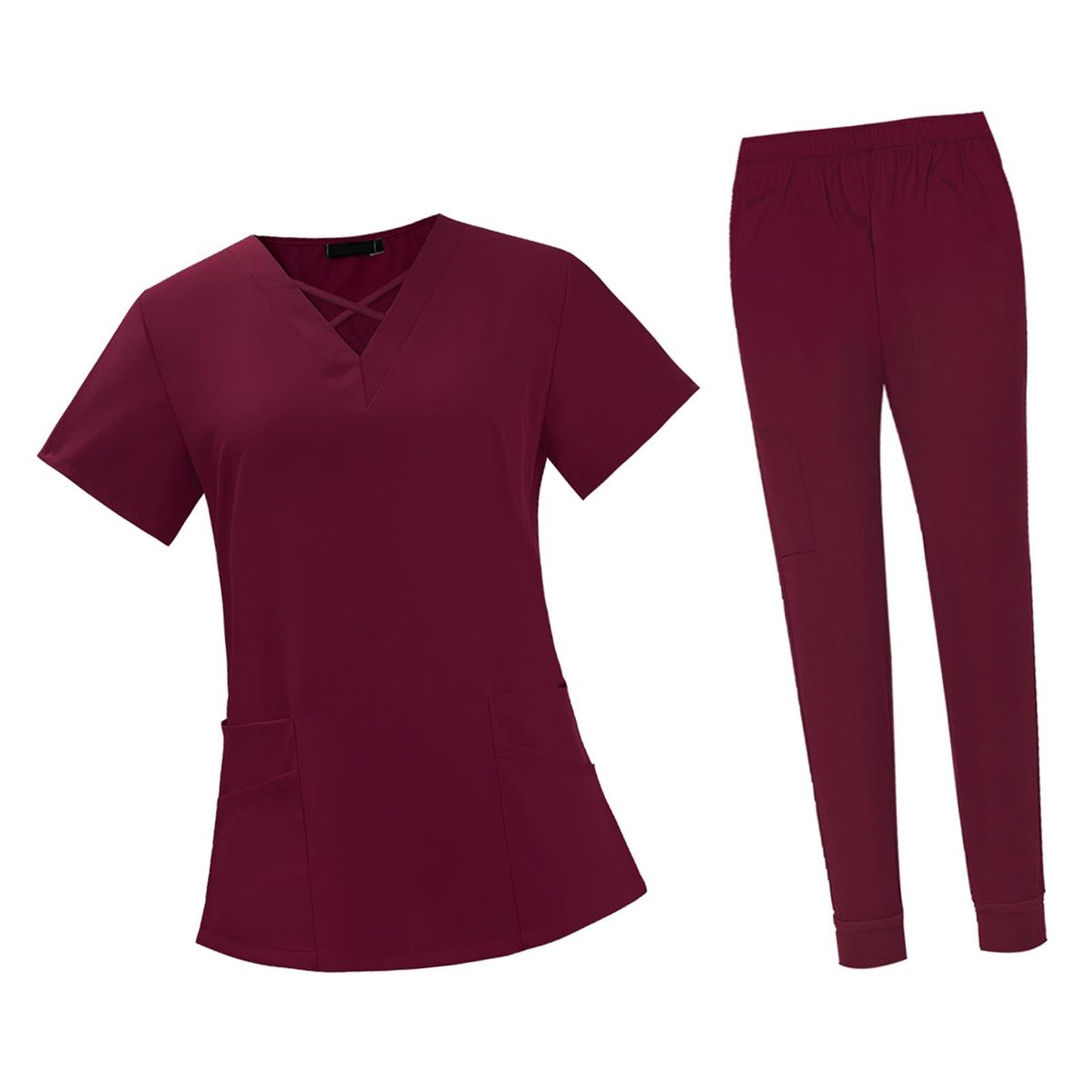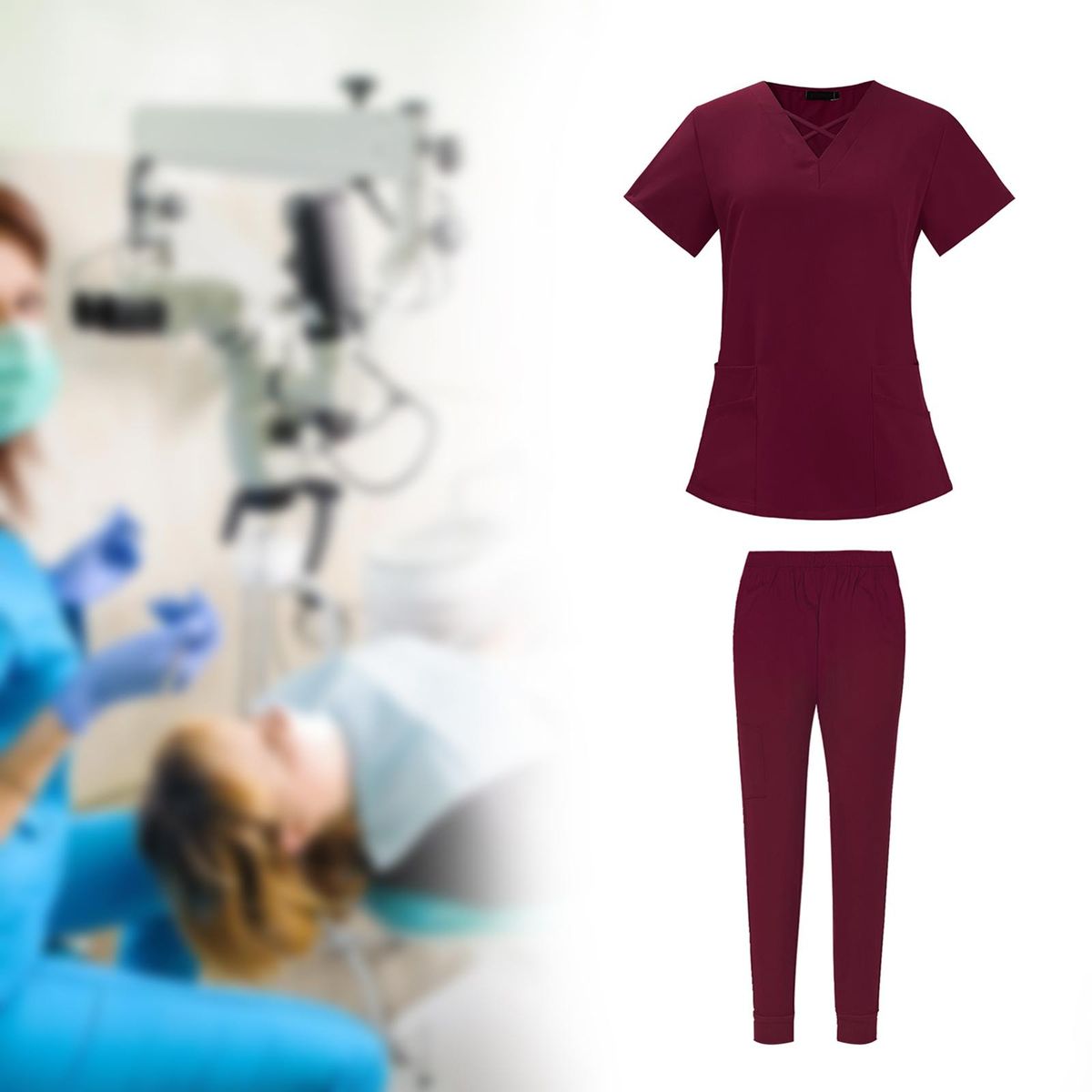 Fashion Design: Simple solid color scrub set, v neck with straps, short sleeve, generous and elegant, widely suitable for nurse, assistant, doctors, and other occupations workers, etc.