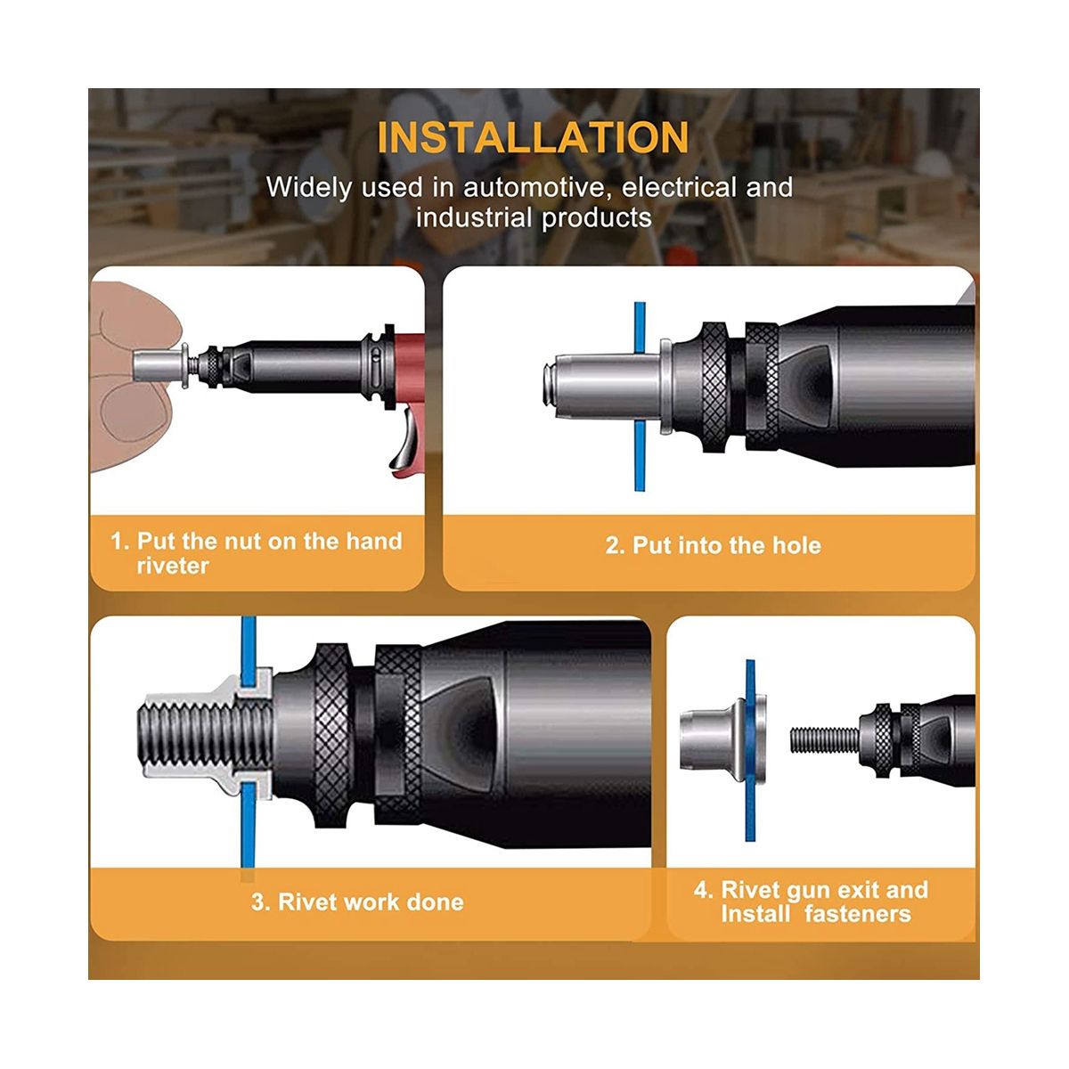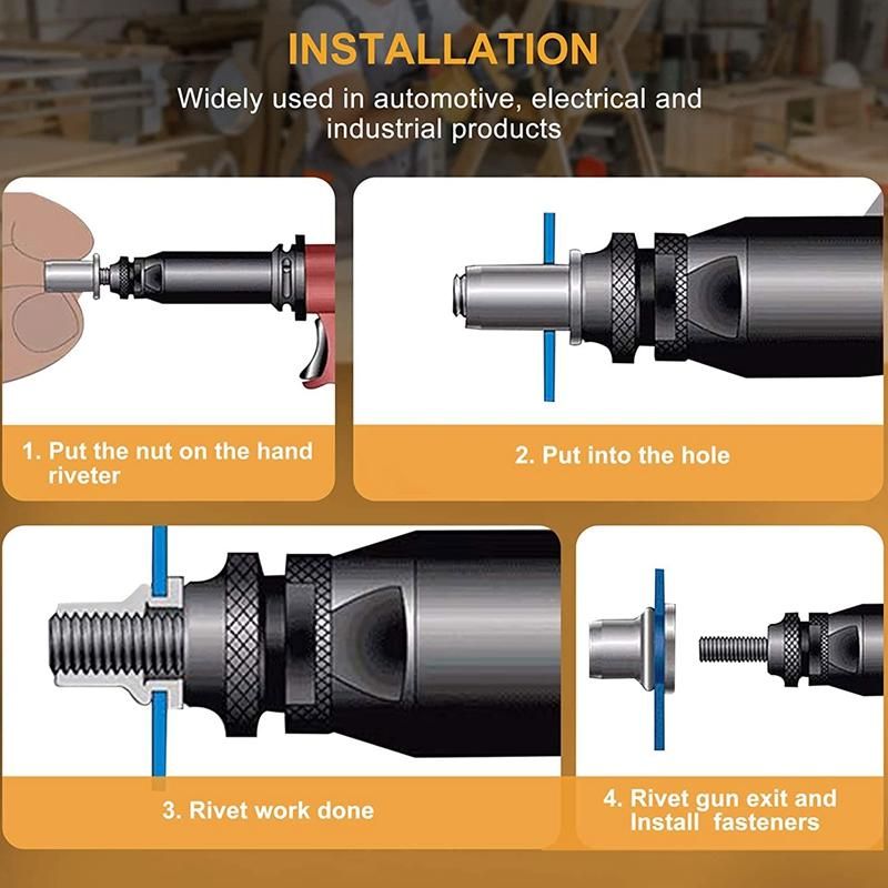 Easy to install The blind rivet nut can be used for connecting bolts Can also be used for a combination of riveting and better fastening