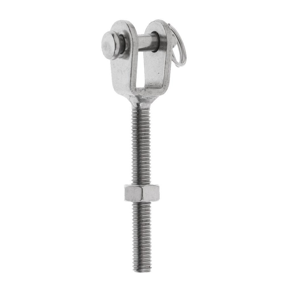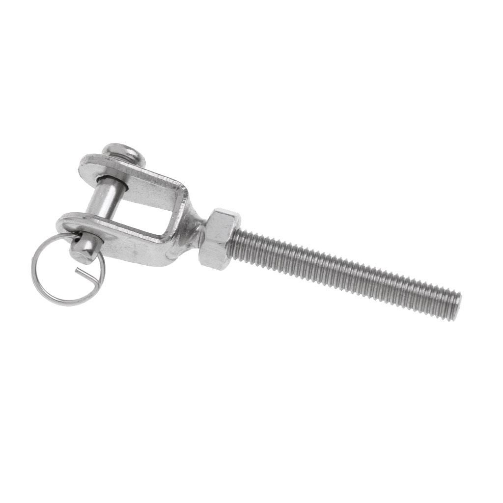 304 stainless steel construction for maximum corrosion resistance and durabilityOne end has open jaw with pin and safety wire for easy, secure connectionsGreat accessory for adjusting the tension or length of ropes and cablesExcellent choice for marine, sailing, boating & industrial applications Easy to installation, includes jaw bolt and nut