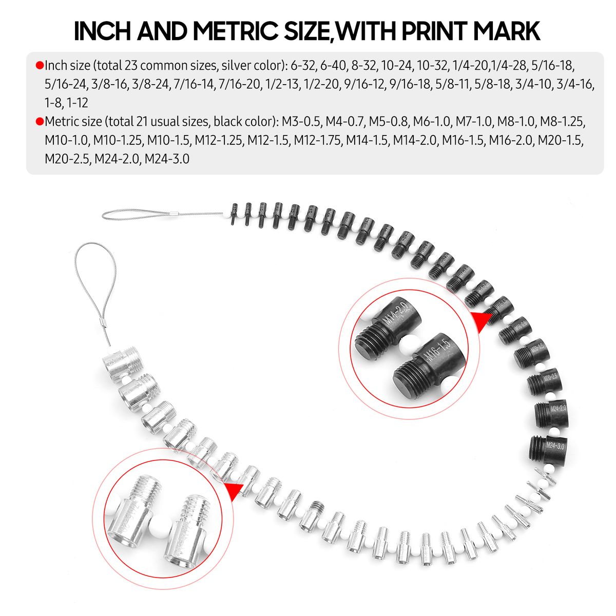 Metric Size: M3-0.5, M4-0.7, M5-0.8, M6-1.0, M7-1.0, M8-1.0, M8-1.25, M10-1.0, M10-1.25, M10-1.5, M12-1.25, M12-1.5, M12-1.75, M14-1.5, M14-2.0, M16-1.5, M16-2.0, M20-1.5, M20-2.5, M24-2.0, M24-3.0