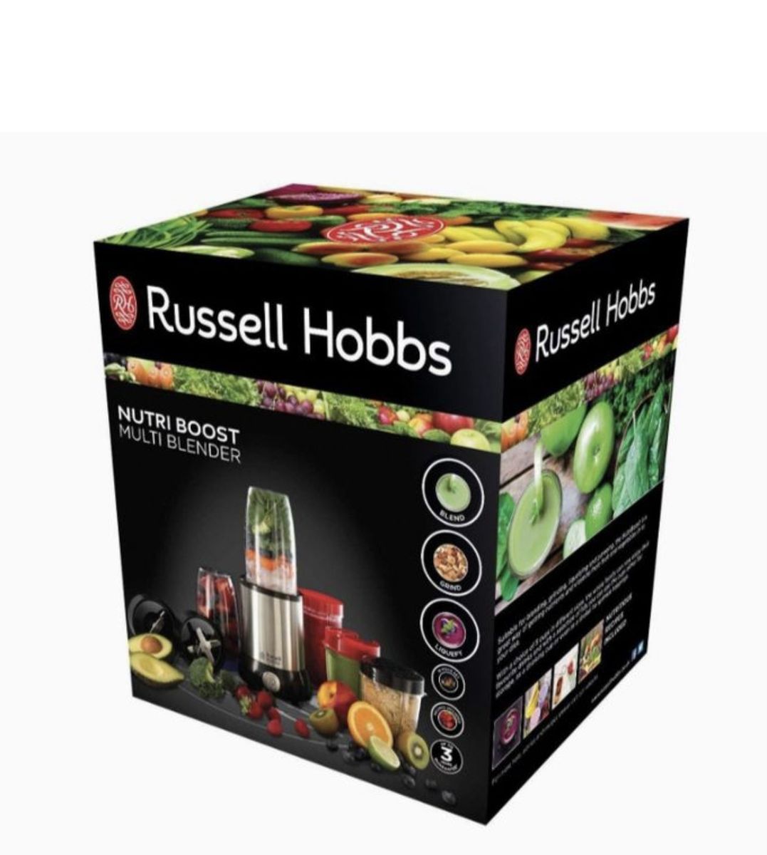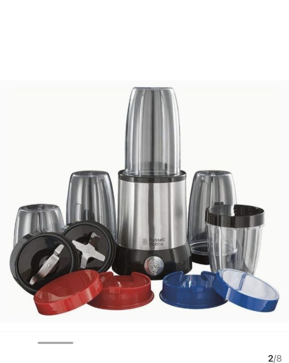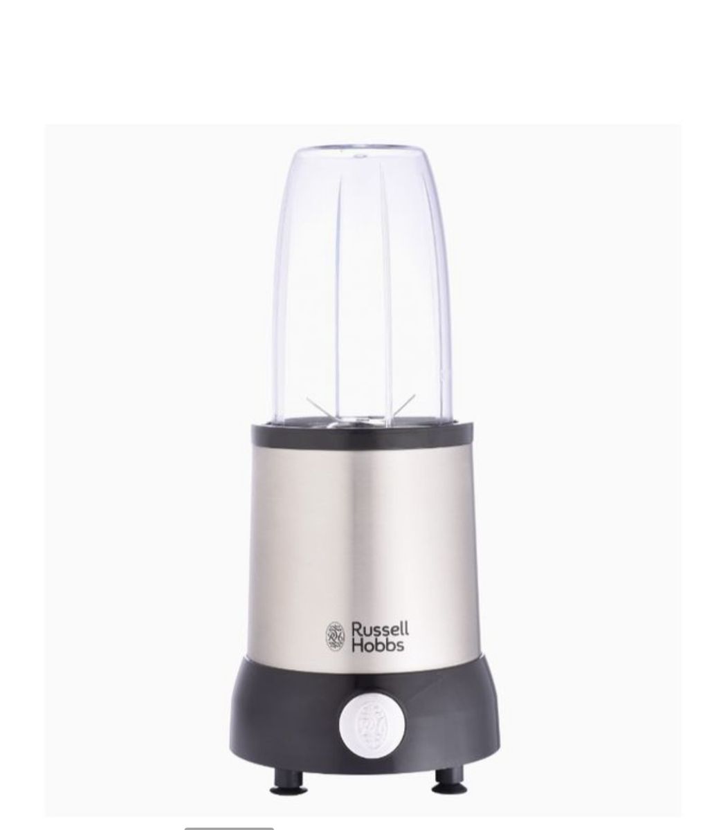 Milling blade and nutriblend blade. BPA free drinking cups and mill included. Flip top cover. www.russellhobbs.co.za. Powerful 1000W motor. Extracts the maximum amount of nutrients, vitamins, taste, and even enzymes from ingredients. Perfect for trying to maintain a balanced diet with a busy lifestyle. Make delicious and healthy shakes, smoothies, soups and purees. Accessories include: 1 x 800ml BPA free drinking cup - 1 x milling blade. 1 x 1000ml BPA free drinking cup - 1 x flip top cover. 1 x 500ml BPA free mill - 2 x keep fresh lids. Non-slip feet. Warranty: Full compliance with national consumer protection act, with proof of purchase. One (1) year warranty, with proof of purchase. Please refer to our website and instruction manual inside pack for full details.