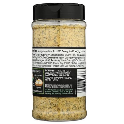 Frontier Co ops delicious blends bring new inspiration to the ever popular nutritional yeast this tasty flavor blend packs a delightful zesty punch with its dill and vinegar notes. The nutty, cheesy goodness of nutritional yeast is a tasty topping for salads, popcorn, veggies, pasta, soups and more. Nutritional yeast is a popular flavor agent and dairy free alternative to shredded cheese topping. This yeast has been harvested and dried, which inactivates it it wont foam or rise like baking varieties, but it adds plenty of flavor. The delicate flakes are perfect to sprinkle on your favorite foods, and a few tablespoons can be used to thicken sauces and soups. Weve created this zesty blend to add fresh flavor to snacks, sides and meals.