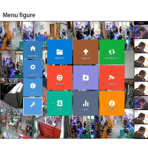 Features:5-In-1 DVR is compatible with AHD+TVI+CVI+IP+HD cameras, you can add more cameras in the future camerasH.264 high profile compression Support hybrid HD-AHD / HD-TVI / HD-CVI /HD-IP 1080p (Maximum up to 4MP) and Analog Camera 650TVL, 700TVL, 800TVL, 900TVL, 1000TVL, 1200TVL inputRecord modes: Manual, Schedule and Motion detection recording. Supports dual streamSupports VGA Maximum HD 1080p , HDMI (Maximum HD 4K output1CH audio input, 1CH audio RCA output; 4CH alarm input, 1CH alarm RCA output; 2 USB2.0 ports, 1 SATA2.0 HDD portQuick Access QR Code Remote Viewing on iPhone, iPad, and Android w/ included Free appRemotely Access Using Standard Windows and Mac BrowserSmart search for selected area in the video, and smart playback to improve the efficiencyInstand email alert if activity detectedSupport IE, Chrome, Firefox and Safari for remote viewProvide web browser management softwareConvenient backup via PC or USB Flash drive Inside the box1 X 16 Channel Hybrid DVR1 X Power Supply1 X Mouse