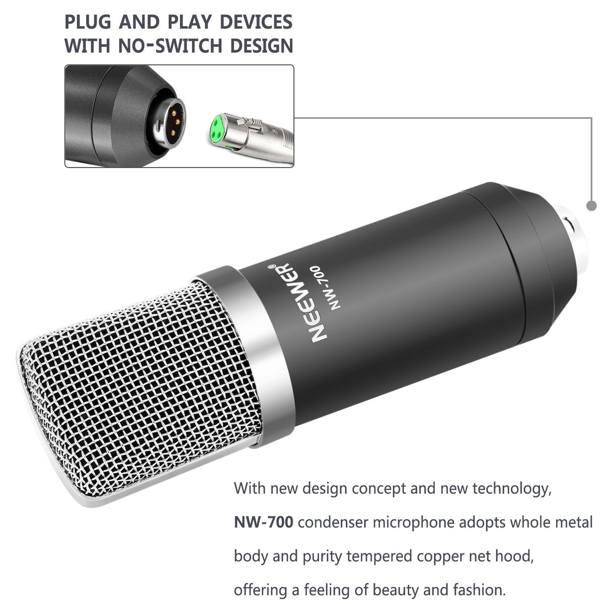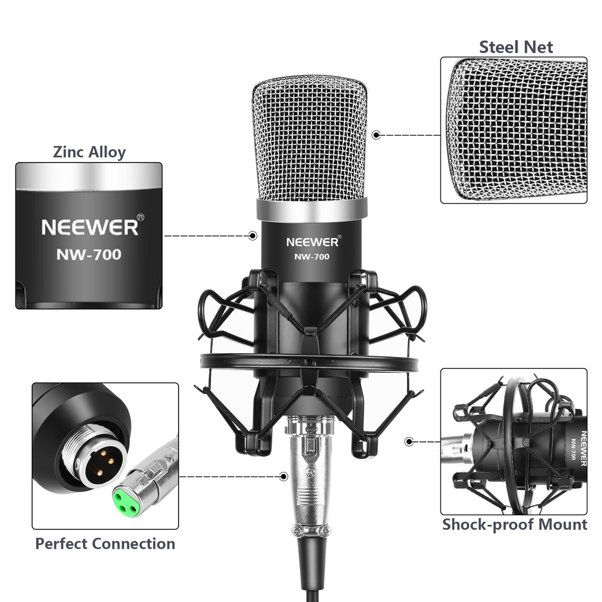 The Set Includes: (1)Black NW-700 Professional Condenser Microphone + (1)Metal Microphone Shock Mount + (1)Ball-type Anti-wind Foam Cap + (1)Microphone Power Cable.