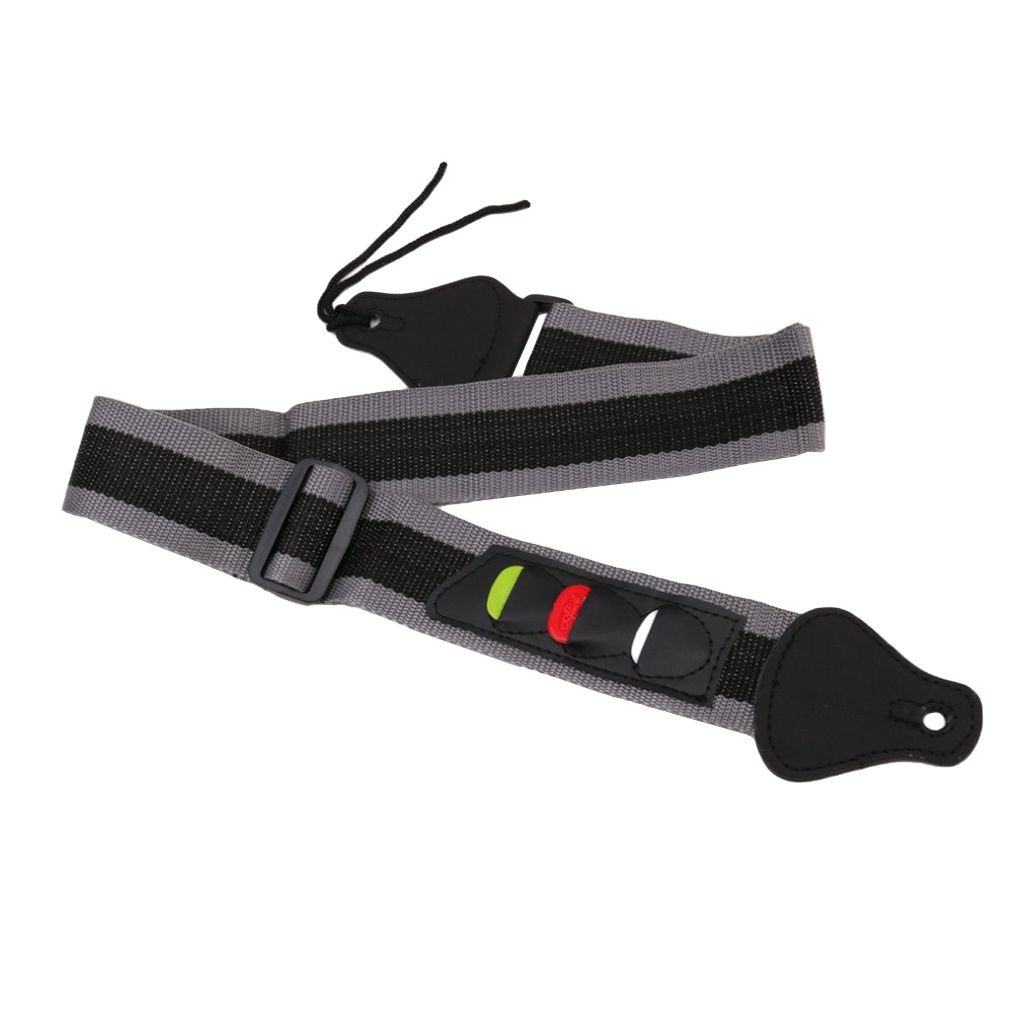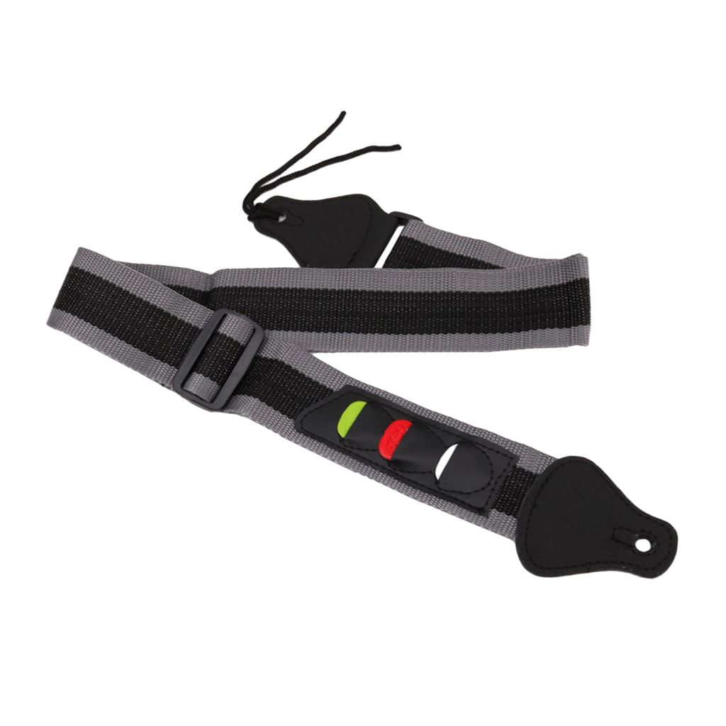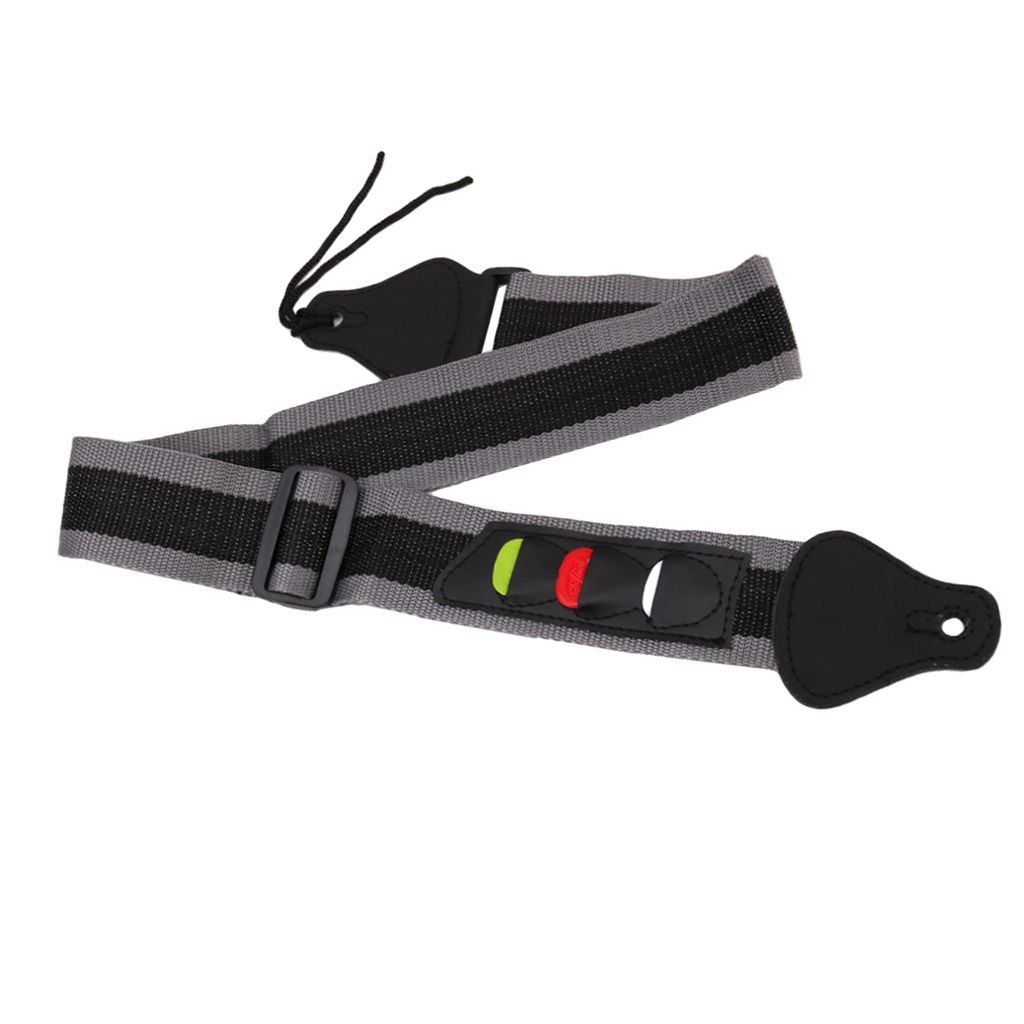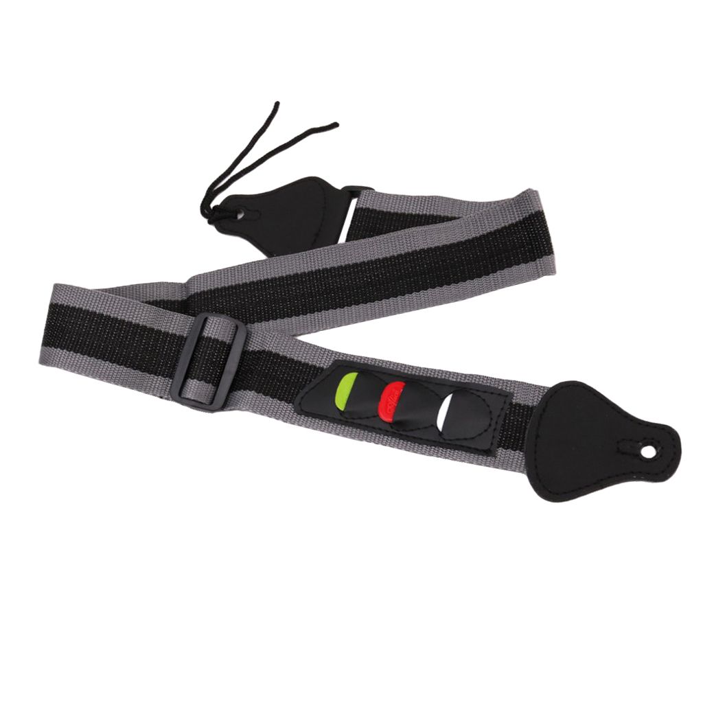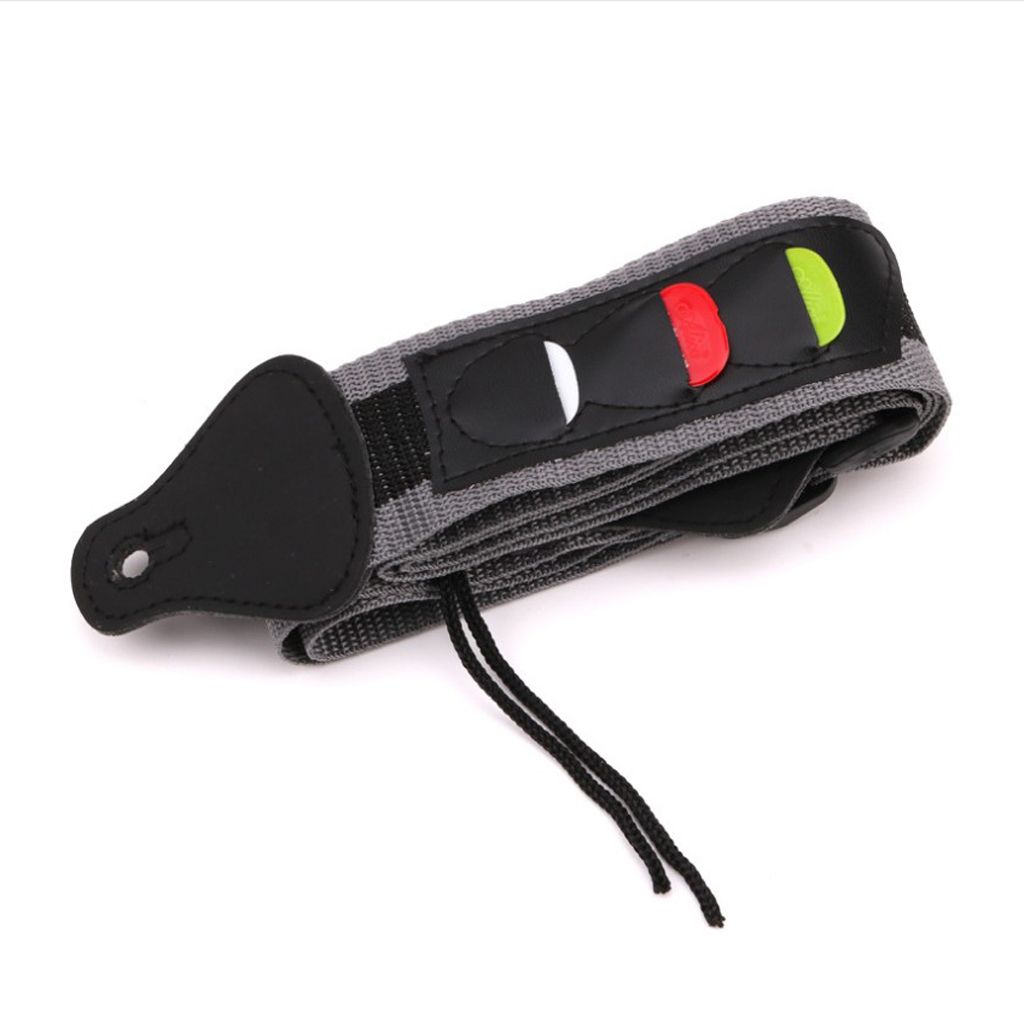 and high quality, durableGuitars bass strap belt with 3 pick holdersWith picks holder, won't forget and leave your picksEasy to attach the strap to your guitarMaterial: Nylon, plastic