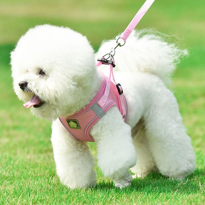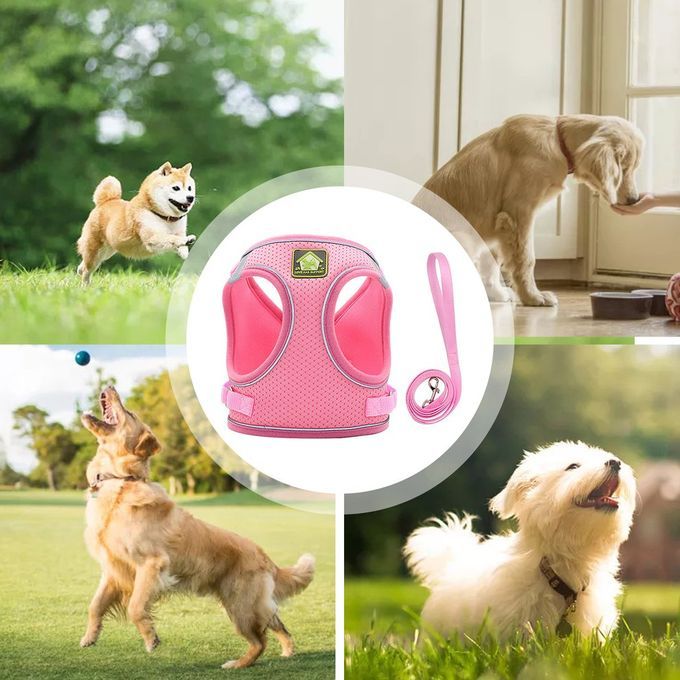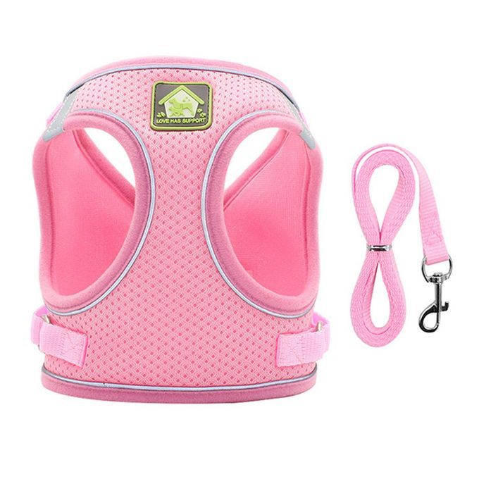 Nylon Mesh At Harness Refle Tive Dog Vest Harness & Leash Set For Walking-pink-L