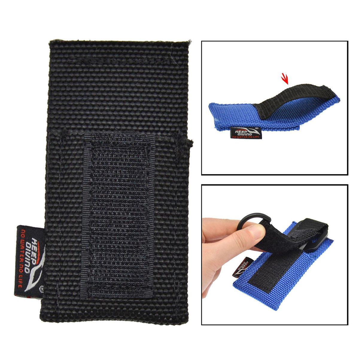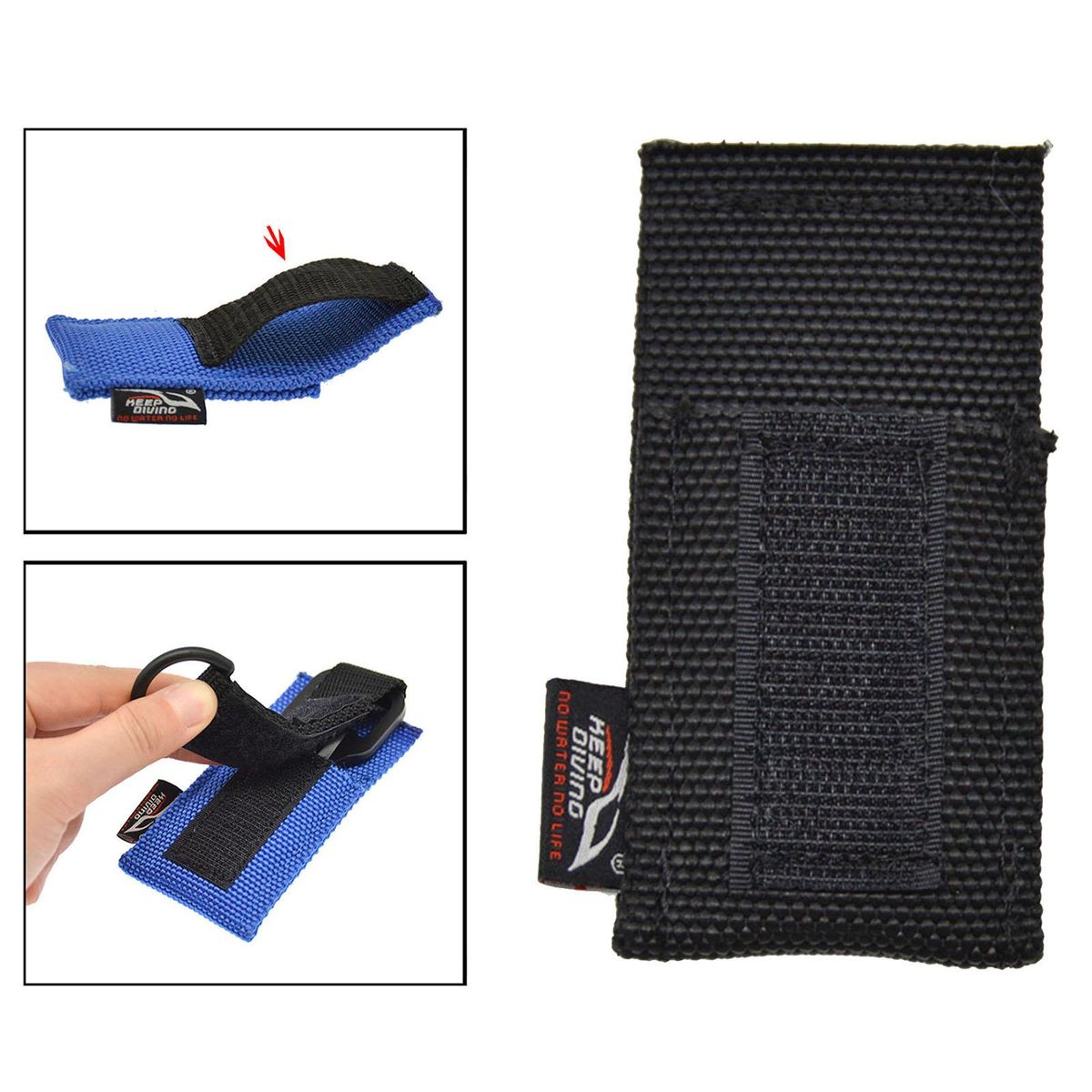 High strength nylon material, durable, strong and wear resistant .With 5cm webbing, it can easy to wear on BCD webbing, belt and other positions .Paste design, strong adhesion, easy to carry and use.The head of the webbing is equipped with a D to facilitate lifting the webbing.Great for swimming, scuba diving, snorkeling, free diving, spearfishing and other underwater activities.