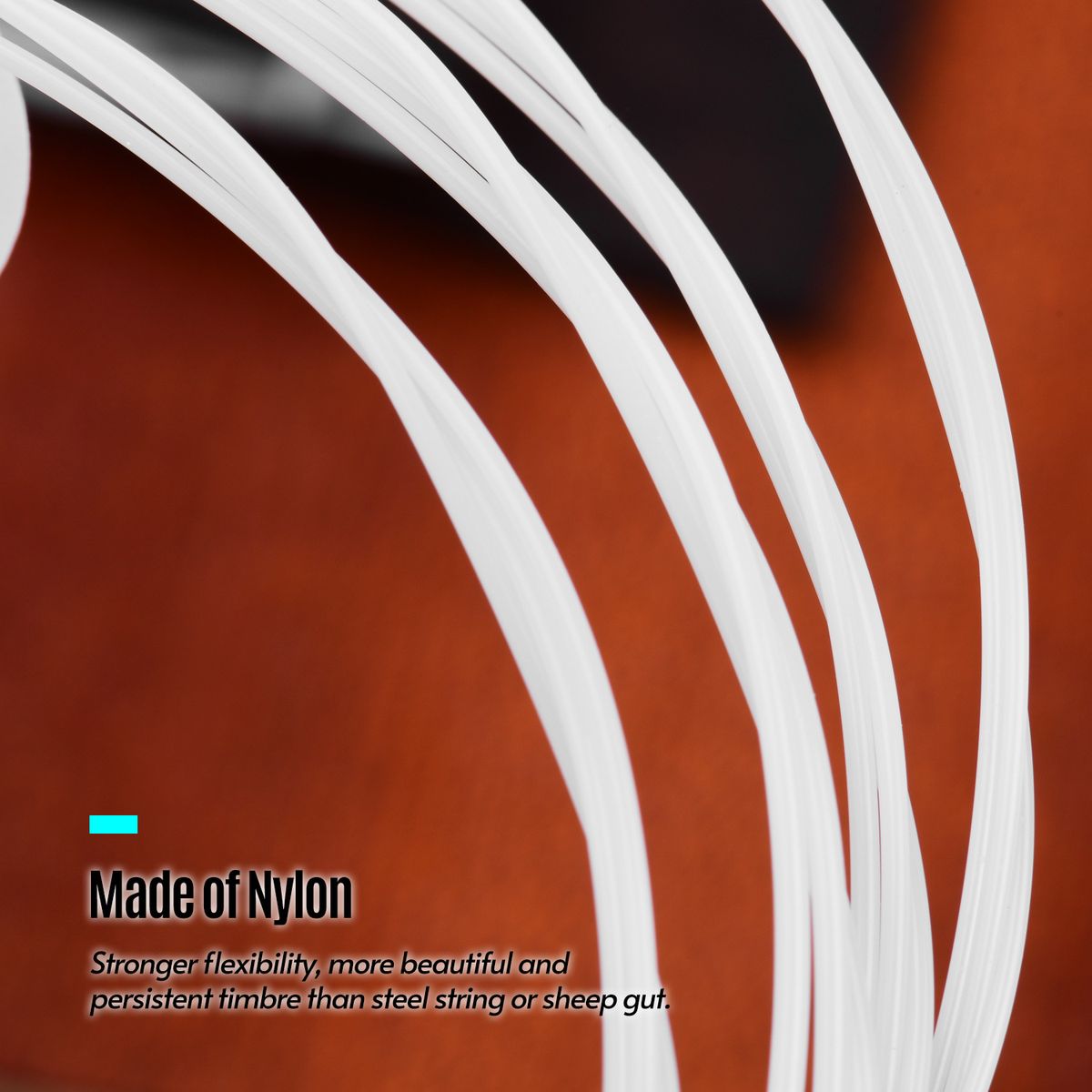 Made of nylon, has stronger flexibility, louder, more beautiful and persistent timbre than steel string or sheep gut.