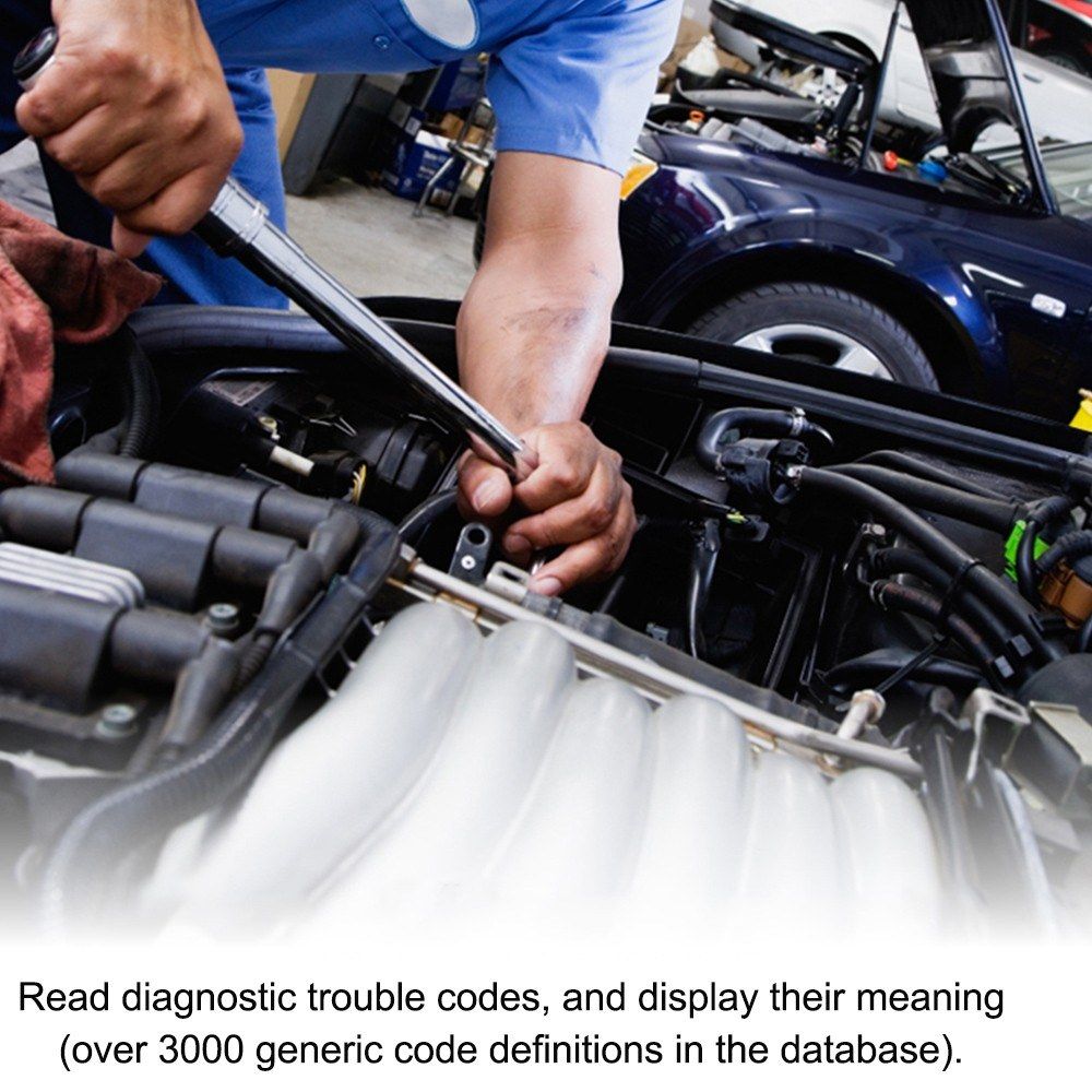 Engine fault code reader works with all OBDII compliant vehicles, 16pin OBDII standard interface.