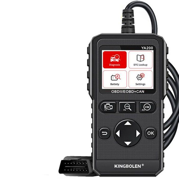 KINGBOLEN YA200 is a code reader with full OBD2 capabilities: Read/clear DTC, I/M ready check, real-time data stream view, Frozen frame data view, O2 sensor test, on-board monitoring system test, EVAP system test, vehicle information retrieval and advanced DTC lookup.