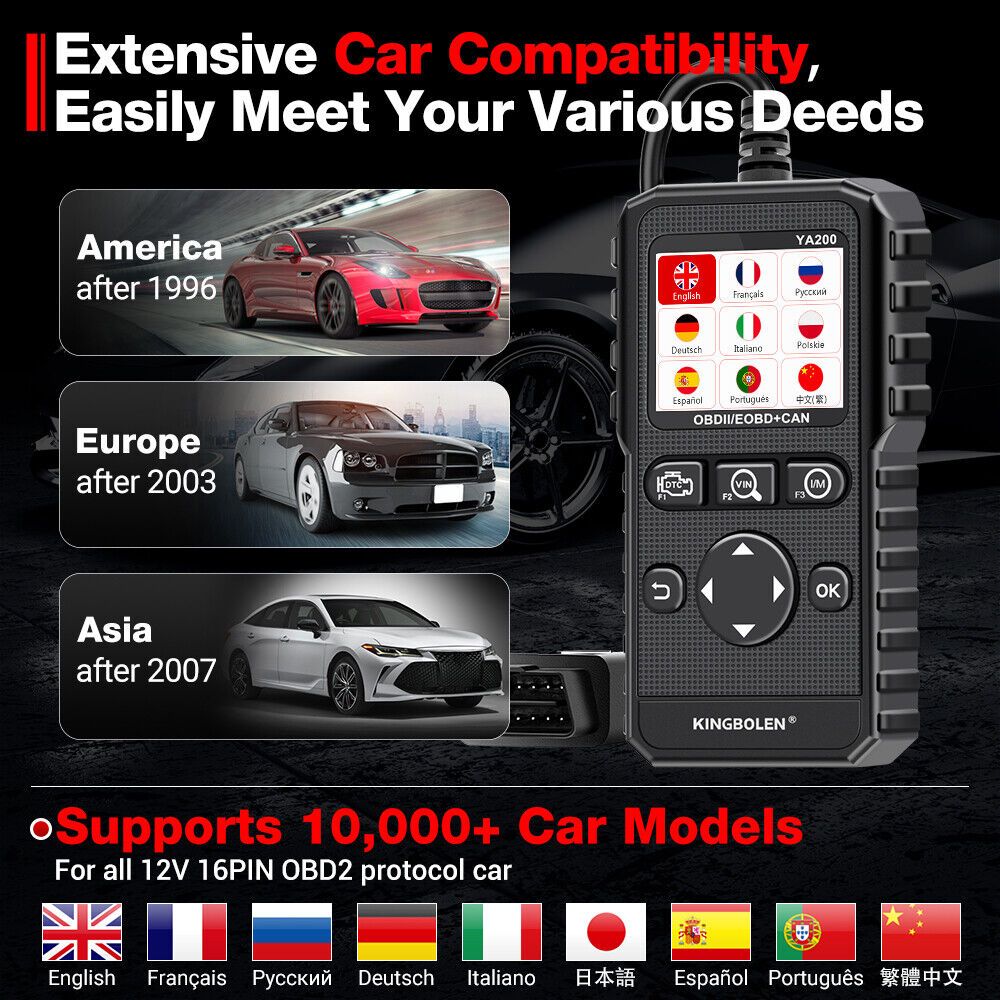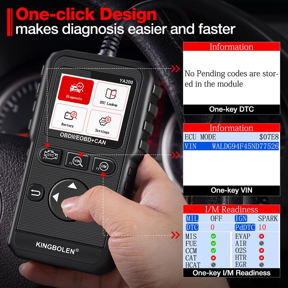 KINGBOLEN YA200 Enhanced Car obd2 Scanner Full OBDII function for checking engine, reading and clearing trouble codes, Mode 6,O2 Sensor testing, Battery testing, EOBD OBDII CAN diagnostic scanning tool for most 1996 and newer cars