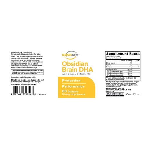 DHA is a vital essential fatty acid for brain tissue and neuronal health and function.* Obsidian Brain DHA features high-purity, ultra-refined, concentrated cold-water marine oil that provides a healthy balance of complementary EPA and DPA for optimum bioavailability and bioactivity.