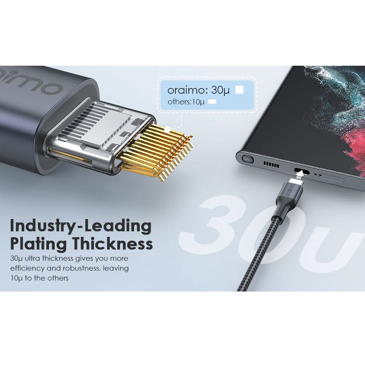 Features:Oraimo C-Type to C-Type cable supports PD 3.0 and QC 3.0 fast charging with 20V/5A(max) output. Higher charging power makes for higher working efficiency. NOTE: Use a charger greater than 100W for faster charging.