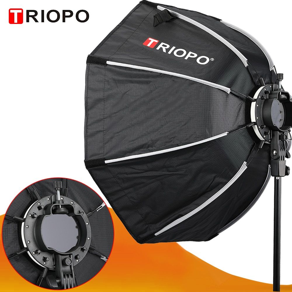 The Triopo 120cm Octagon softbox for speedlites is a 8-pole deep umbrella type softbox that is also portable and has a superior fabric with exquisite workmanship and fine crease resistance, making its reflective effect better. It features white soft cloths that act as light diffusers, making your light soft and even. The two cloths are both an internal diffuser as well as an external diffuser.