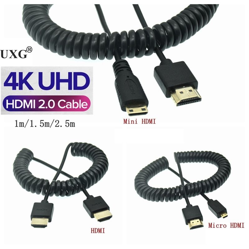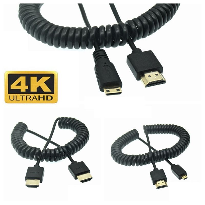 1X OD 3.0mm Mini HD To Hd Coiled Cable HDMI-2.0 To Micro HDMI-compatible Stretch Spring Curl Flexible Thin Cables 2k 4k Hd @60hz