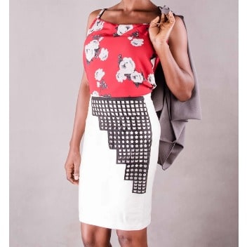 Buy Off White Skirt With Unique Black Laser Cut Faux Leather Design in Nigeria