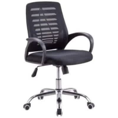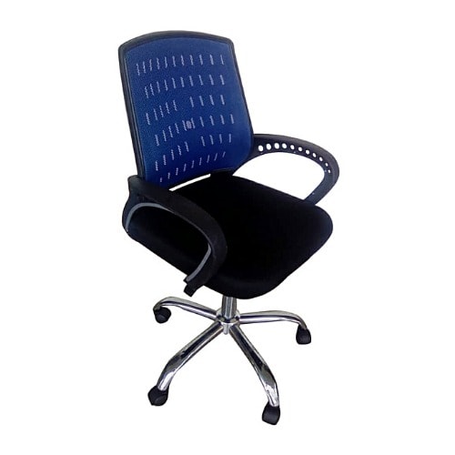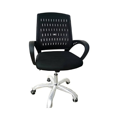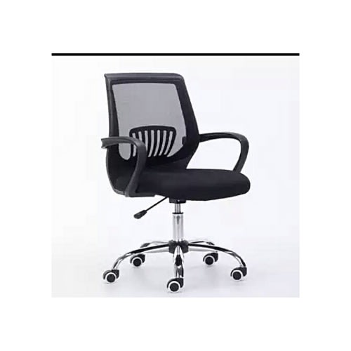 Item is not assembled on delivery but assembly is easyThis Lower back revolving office chair is super comfortable and good for use bothe at home and at the office.It features an external back support to keep you comfortable for as long as you need. It is very durable and long lasting. It has adjustable and lockable functions inbuilt for maximum comfort and relaxation even while working.Material: Mesh.