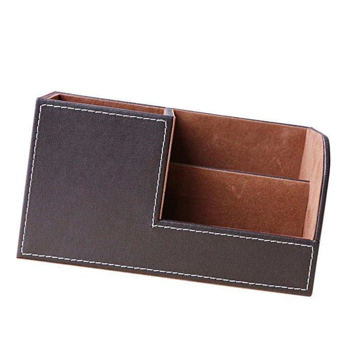 Leather Office Desk Organizer Multi-functional Stationery Box Holder Coffee
