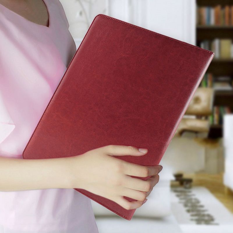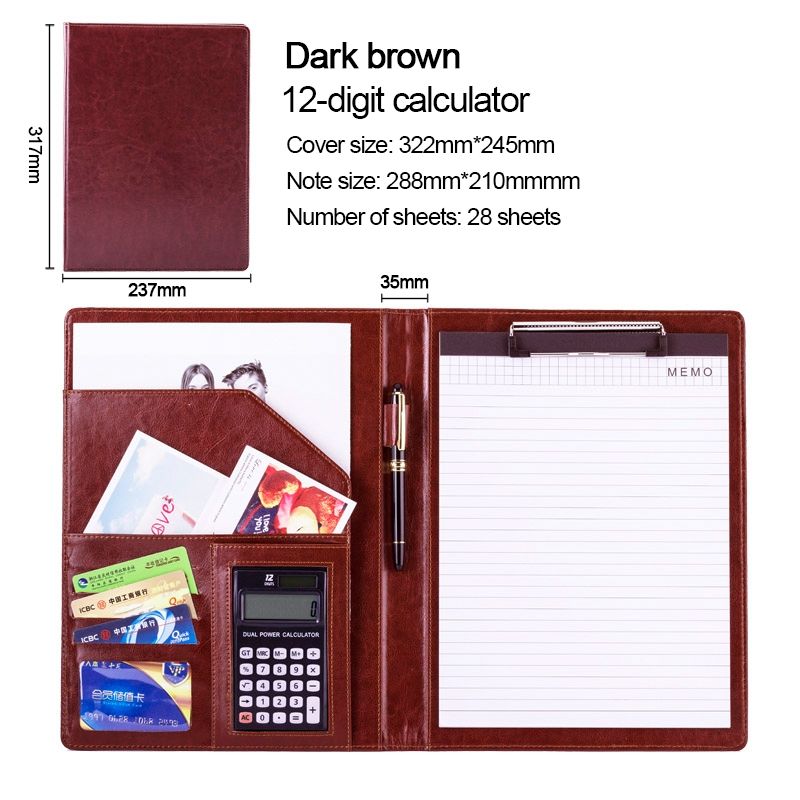 Office Supplies Business Style Leather Document Folder with 30-pages A4 Note Pad & Calculator (Dark Brown)