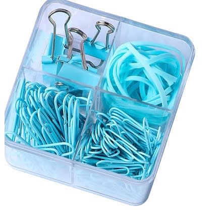 An essential set for office stationery. Includes tailclips, pushpins, rubber bands and paper clips for everyday office use. A brilliant pack of assorted office stationery accessories, perfect must-haves for every desk.