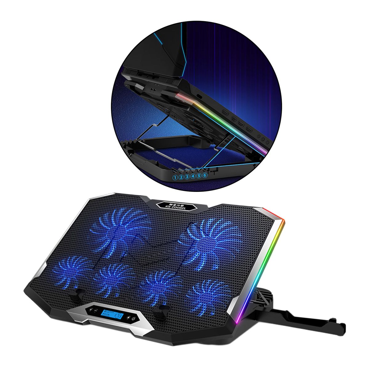 Suitable For 12-18 Inches Laptops. HD LCD Display. Six-gear wind speed,Seven RGB lights mode