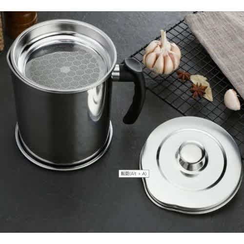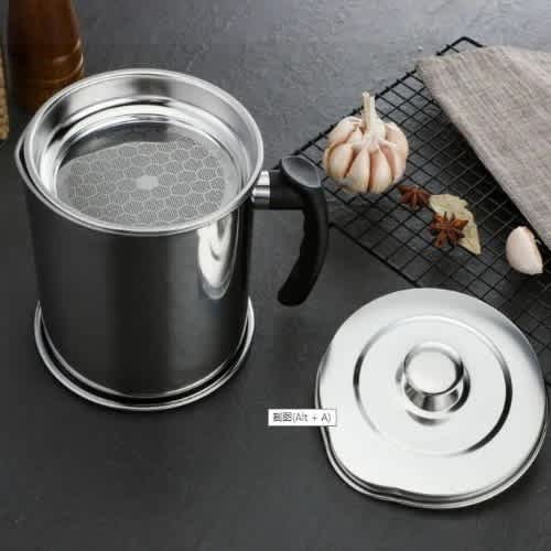 Our oil grease container and the coaster tray are made from wrought iron, and there is a non-stick coating inside and outside, which will prevent the grease keeper from rusting.Perfect design grease canister: there is a lid on the grease collector which will stop the dust falling into the oil.A removable fine mesh strainer which is fine enough to filter out old batter pieces from cooked items; small pour spout design works well to prevent any leakage.Catch and capture, stain and store used cooking oil, coconut oil, pan grill grease. Also can be used to store other liquid seasoning.Easy clean grease pot: just clean the grease strainer container with soft fiber.