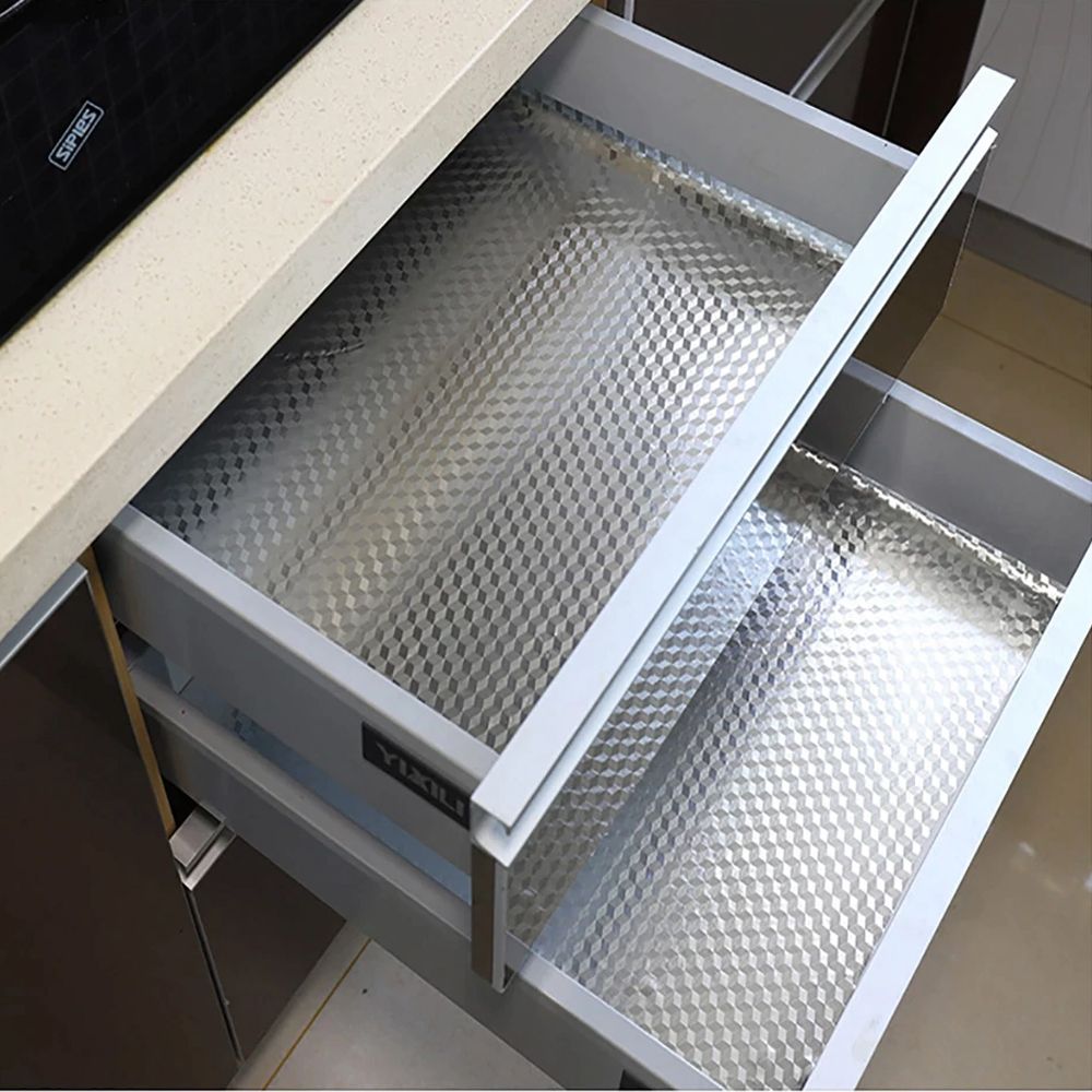 Other Features:Material: aluminum foilColor: silverDesign Pattern : 3-dimensional square checkSuitable for: Desk, floor, stove, wall, cabinet, drawer, wardrobe, etc.